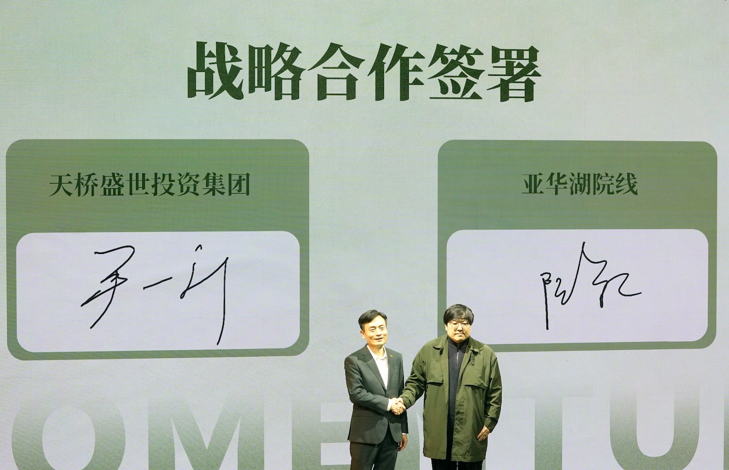2025年末,“天桥一号”项目正式发布,预示北京天桥艺术大厦将打造全新演艺生态集群。如今,“天桥一号”京沪战略合作正式签约。北京天桥盛世投资集团党委书记、董事长尹一新与亚华湖院线总经理阮豪共同签约,为“天桥一号”正式共启京沪演艺资源联动、协同发展的全新篇章。