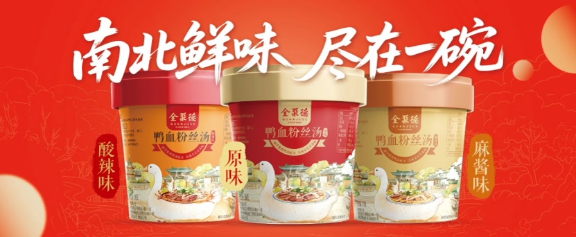 本次糖酒会上,全聚德重点推出的速食版鸭血粉丝汤,是其深化“餐饮产品食品化”战略的又一重要成果。该产品由公司全资子公司北京全聚德仿膳食品有限责任公司出品,依托全聚德在鸭类食品领域的深厚积淀,融合南京传统工艺与全聚德鸭汤配方,创新加入烤鸭鸭架熬制醇厚汤底,搭配卤制鸭血、鸭肝及Q弹粉丝,推出原味、酸辣味、麻酱味三款口味,兼顾南北消费偏好,实现了传统风味与现代便捷饮食需求的完美融合。