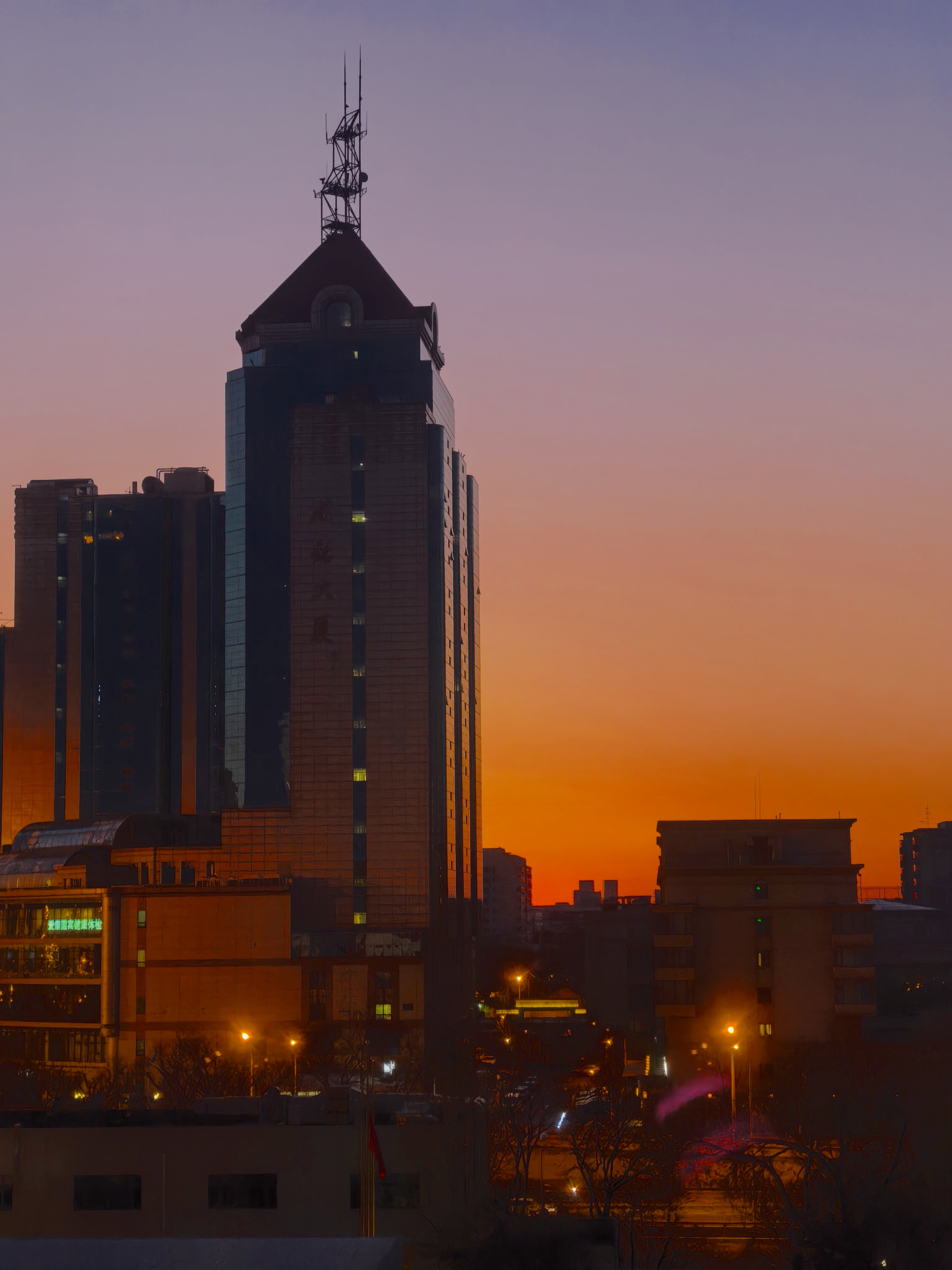3月27日清晨,随着天边一轮红日缓缓升起,温暖而柔和的晨光与夜间城市里带给人们光明的路灯“无缝”衔接,在带来许多美丽景色的同时,也唤醒了京城新的一天。