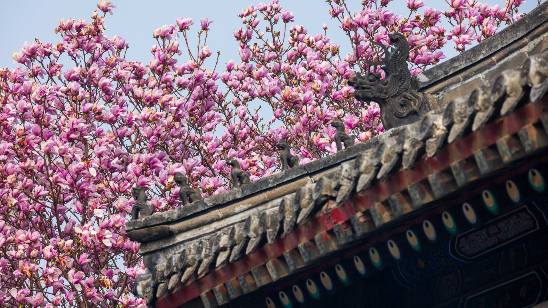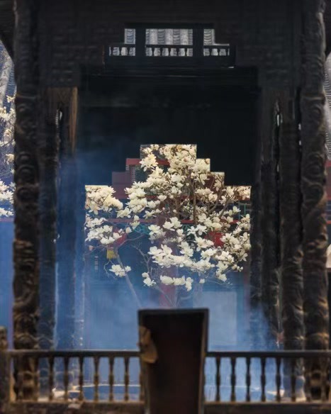 白云观内青烟袅袅,白玉兰与紫玉兰迎来最佳观赏期,春日盛景如约而至。