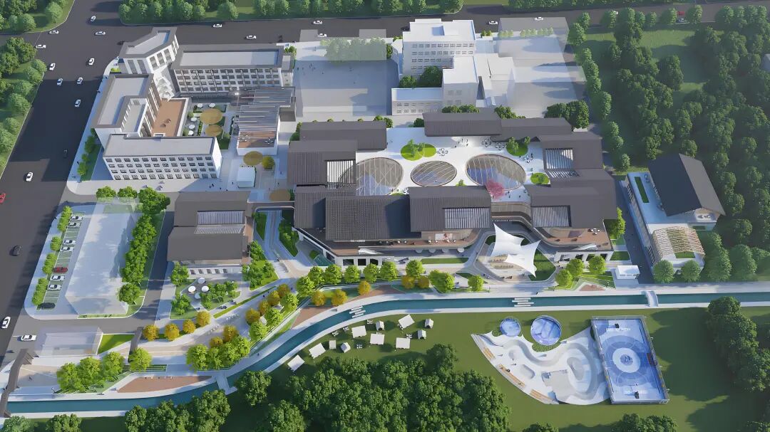 项目对低效商业空间与陈旧设施进行全面升级,规划零售、餐饮等多种业态,全面满足周边居民消费、休闲、社交等多元需求;同步恢复玉带河历史水系、打通滨水廊道,实现历史文脉传承与现代商业发展的融合。