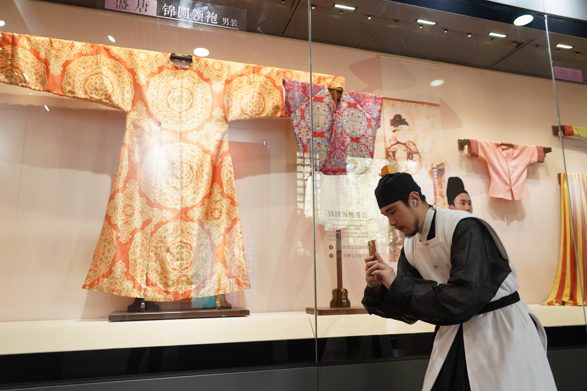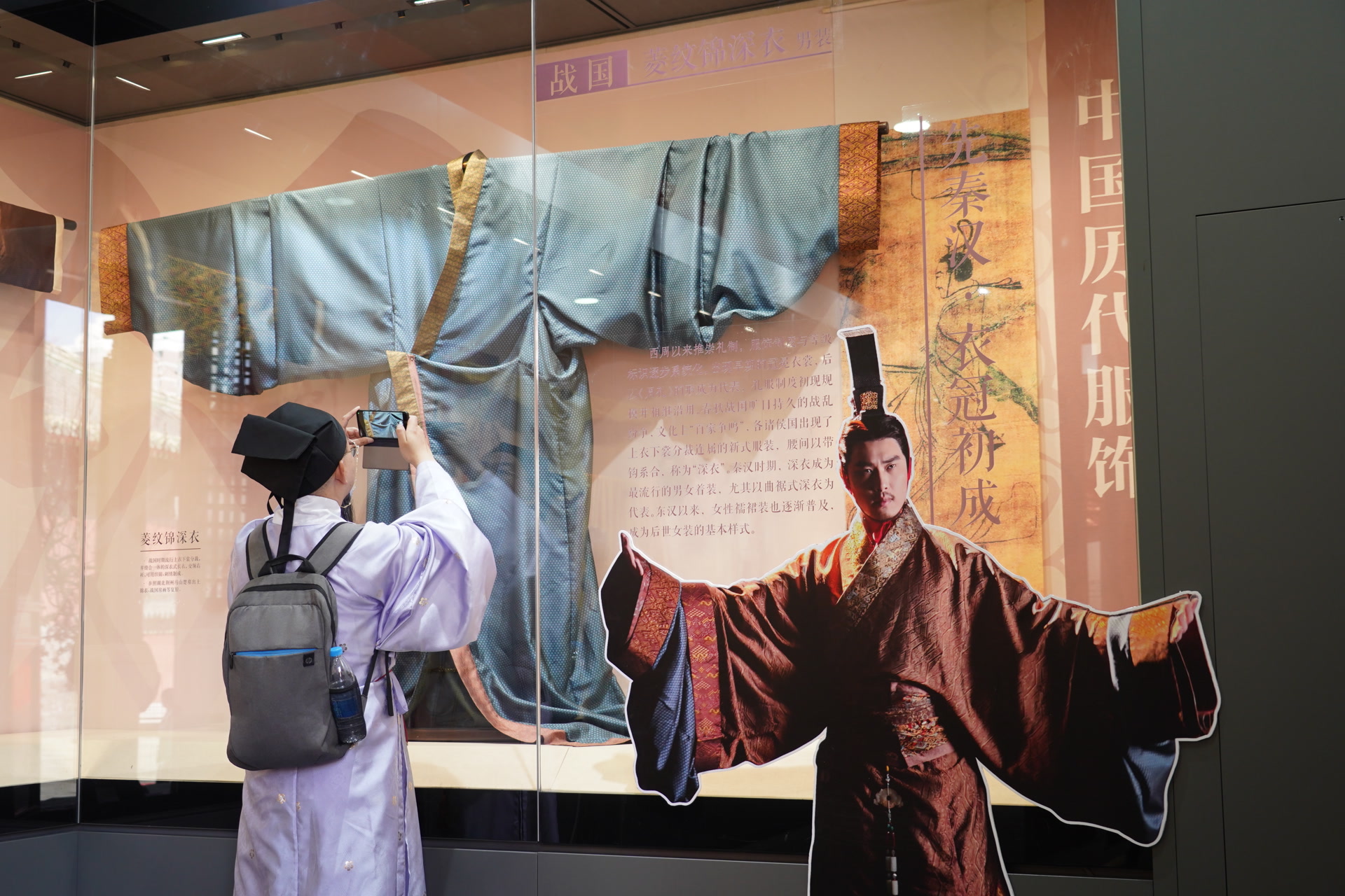 展览共设“历代服饰”“礼俗服饰”“节令服饰”三大单元,展示先秦深衣、汉代曲裾等历代具有代表性的服饰制式,呈现礼乐制度下的服制范式,展出传统节日节气的代表性服饰。
