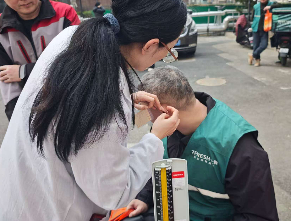 活动现场,医护志愿者为新就业群体人员测量血压、解答疑问,并针对长期骑行的职业特点给出健康建议;理发志愿者则为前来参与的人员提供细致周到的理发服务。活动累计服务新就业群体人员50人次,以便捷、贴心的服务形式获得了到场人员的一致好评。