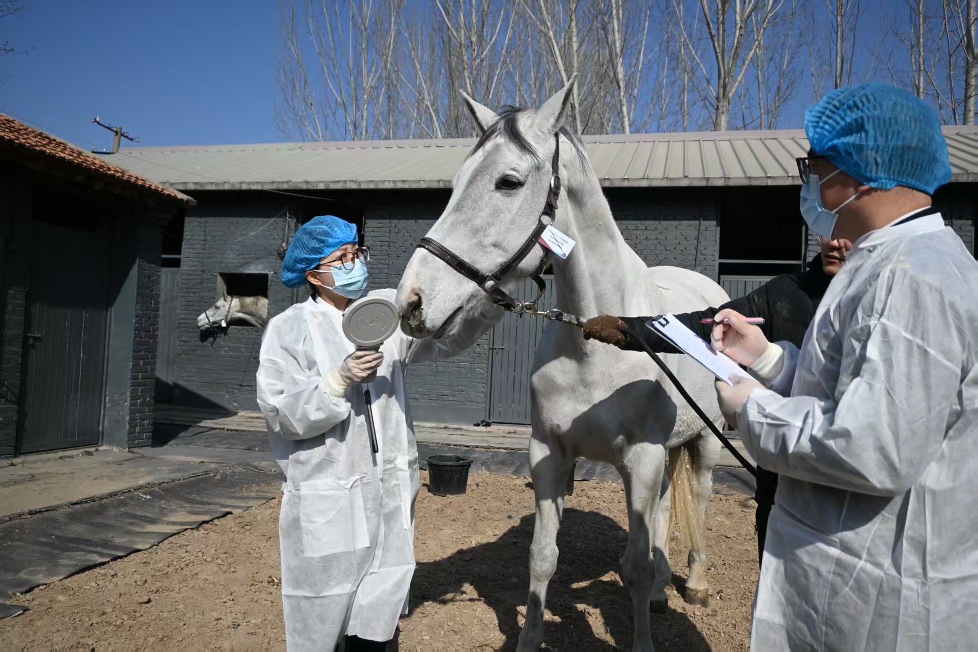 进境马匹在隔离检疫期间,海关定期对隔离马匹开展临床检查、体温监测,重点对马传染性贫血、马流感等动物疫病开展采样检测。为了保持马匹的竞技状态,通州海关还创新了“边隔离边训练”的监管模式,在严守生物安全底线的前提下,监督指导企业科学开展马匹日常训练管理。