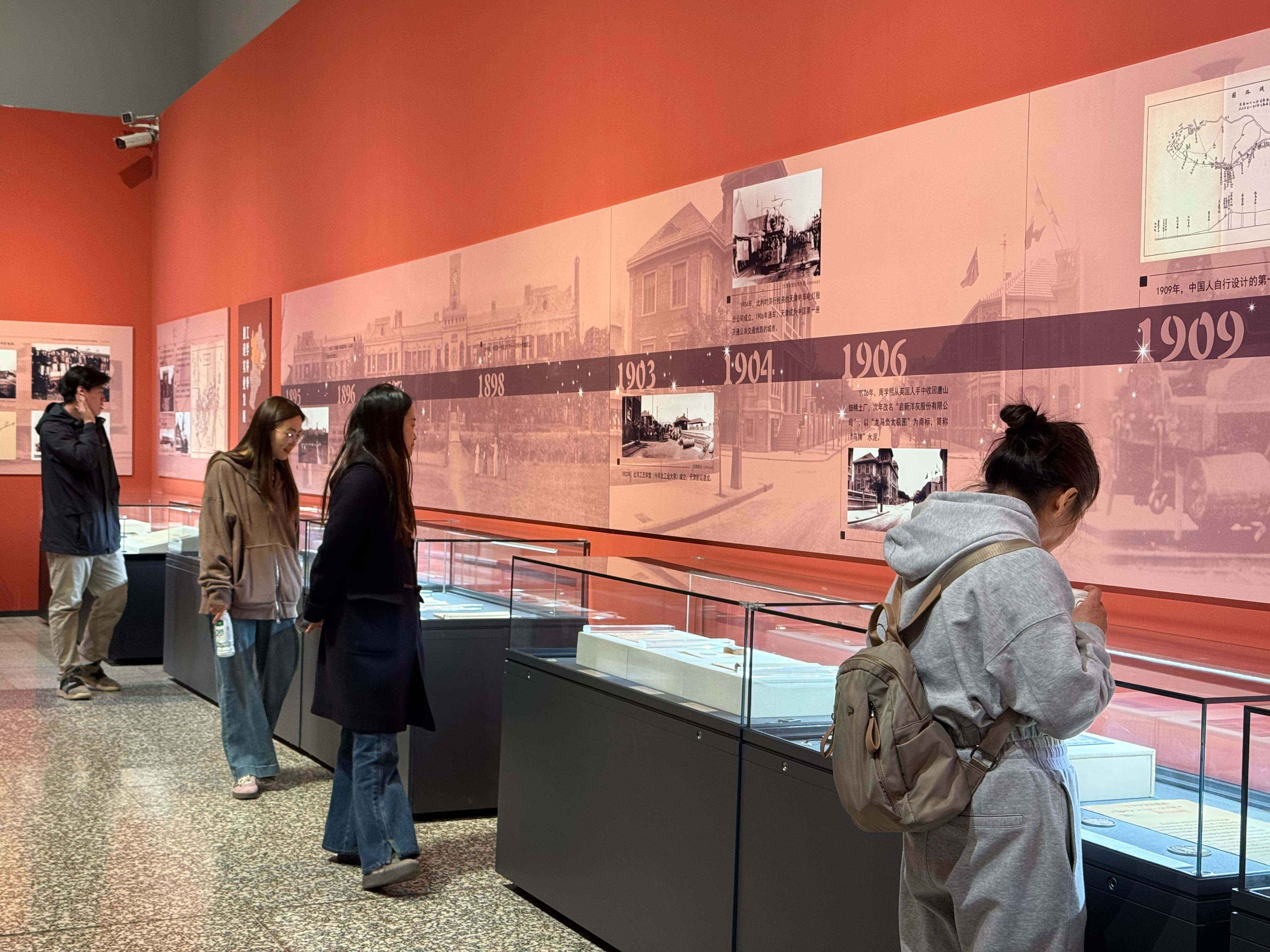 1897年,天津至北京马家堡铁路通车。展柜中还展示了首都博物馆藏津芦铁路路轨。该轨为1898年英国巴罗钢铁厂生产,隶属中国官办铁路,应为津芦铁路延至马家堡车站后采购的备件。