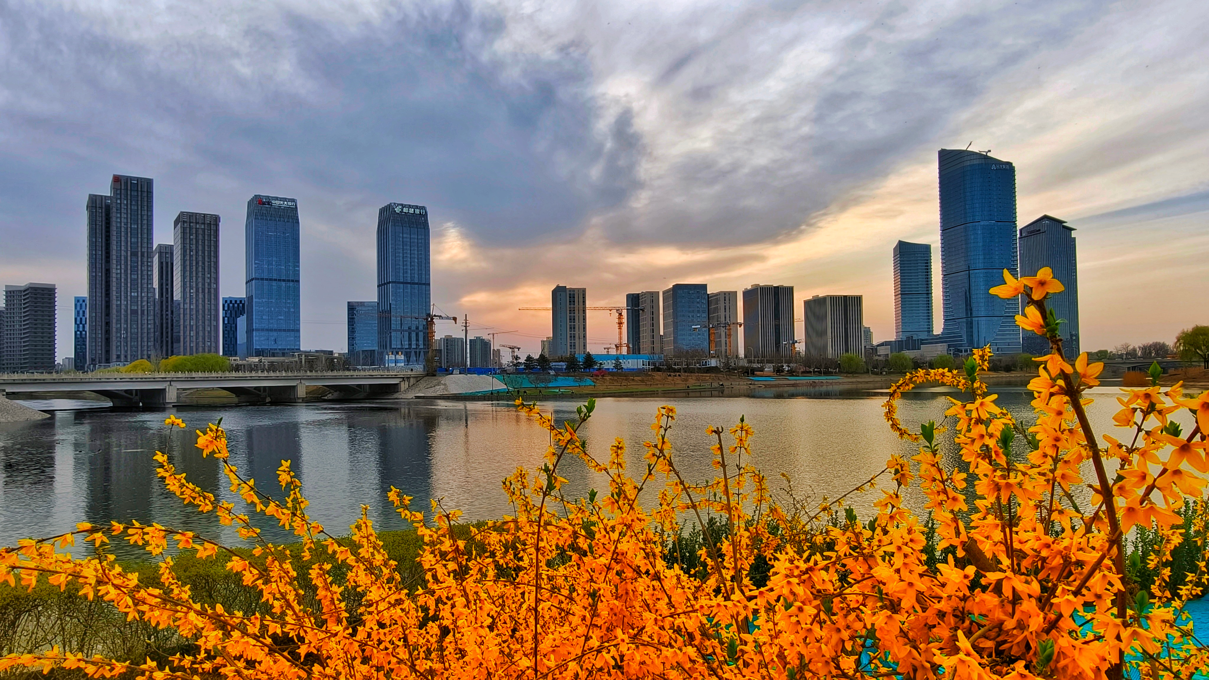 3月27日傍晚,夕阳似一位神奇的画师,将天空染成橙黄与淡紫交织的梦幻色彩。花朵在光影中摇曳,湖水泛着粼粼金光,此般美景,宛如诗画。