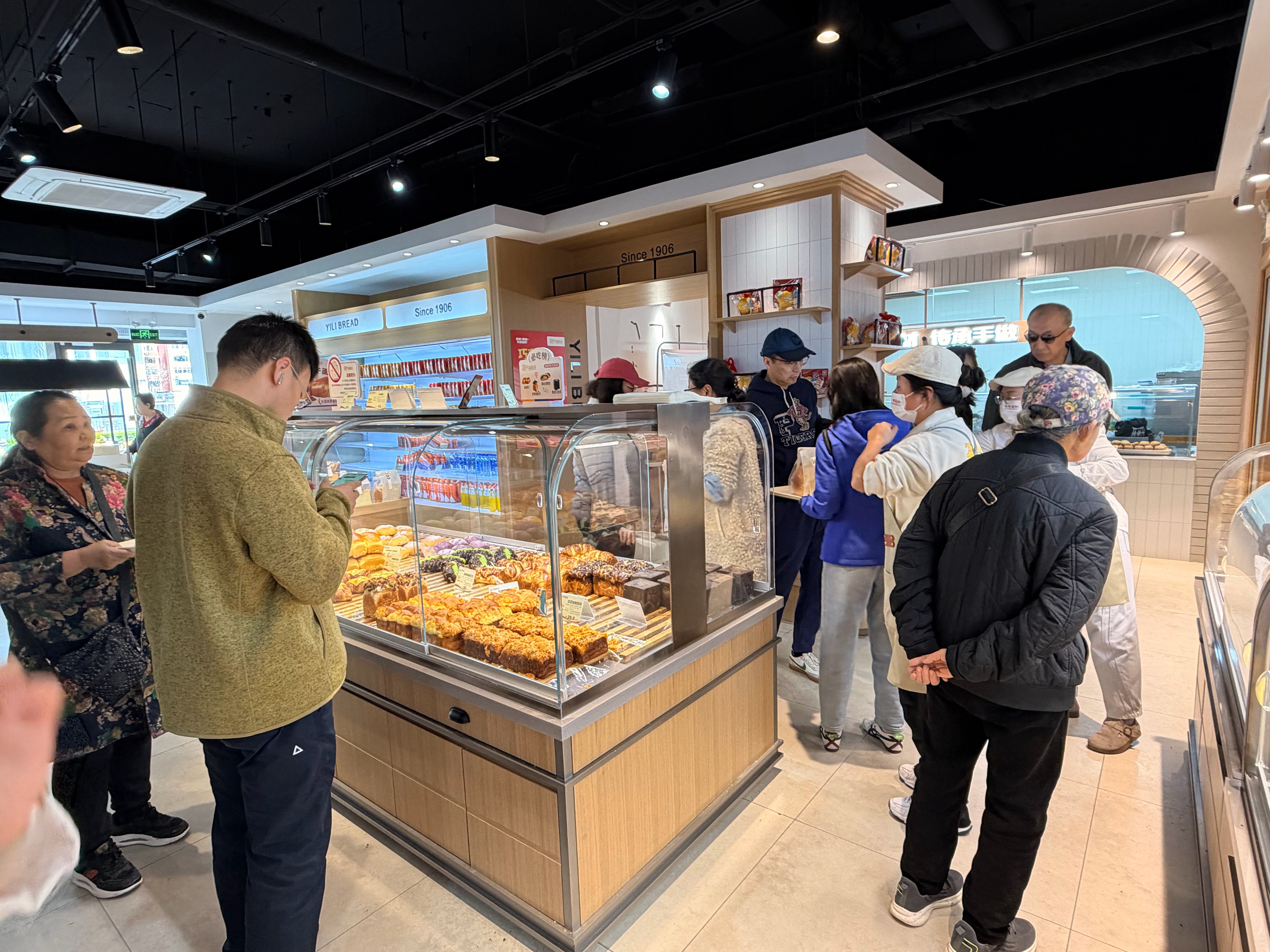 走进义利Bread门店,现烤面包的香甜气息扑面而来。循着香味走到店铺尽头,透过玻璃橱窗,可以看到面包师傅正在烤制间里忙碌——一盘盘生面包坯被送进烤箱,不一会儿,又有一盘盘新鲜出炉的面包被端上柜台。现烤面包色泽金黄,还冒着热乎气,许多消费者正端着餐盘站在柜台前,就为了等这刚出炉的现烤面包。
