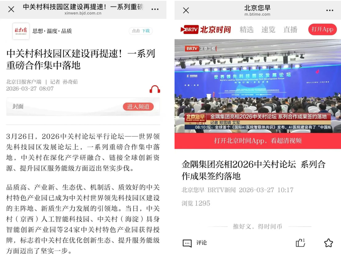 此次金隅集团亮相2026中关村论坛,吸引了众多主流媒体的目光,北京日报、北京新闻等媒体纷纷对其进行了报道。