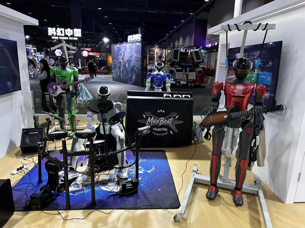 而在展厅里,机器人乐队的表演最引人关注,它们默契地演奏架子鼓、电子琴、吉他等乐器。据介绍,这支机器人乐队未来将从室内演播环境走向开放公共空间,甚至有望登上即将到来的夏季音乐会舞台。