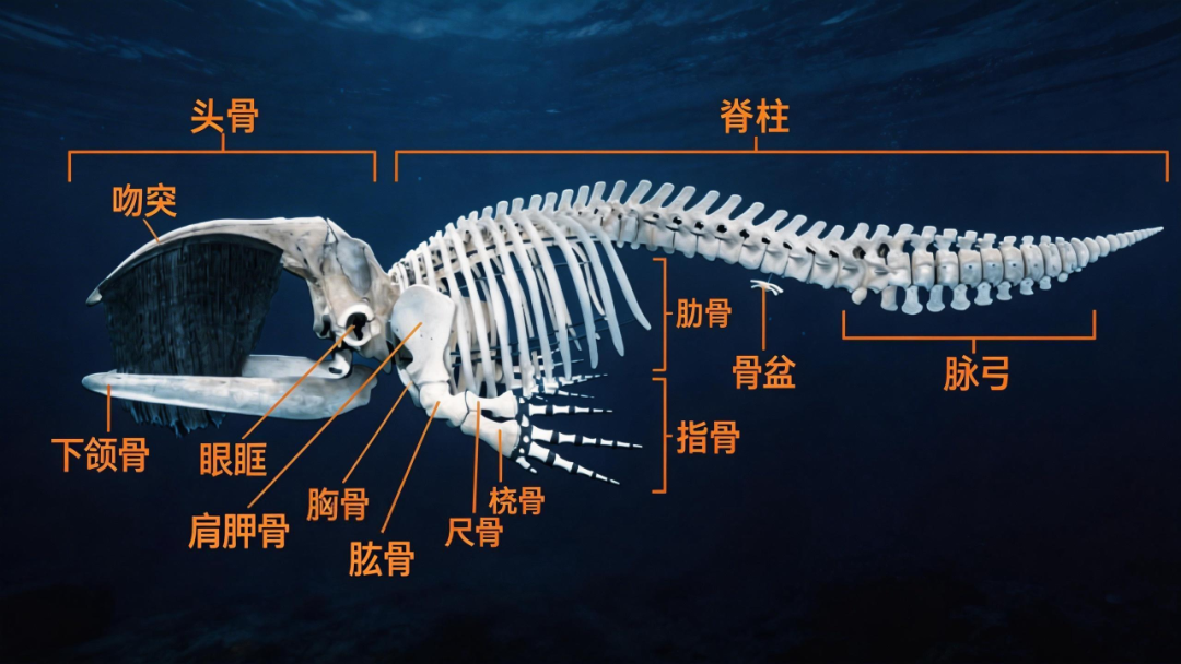 走进国家自然博物馆的《鲸奇——海洋深深之遇见鲸》特展,你会被那具悬吊在半空中的鲸骨架所震撼——仔细端详这些骨骼的每一个细节,你会发现,这不仅仅是一具骨架,更是一本翻开的历史书,记录着鲸类祖先从陆地走向深海的漫长旅程。