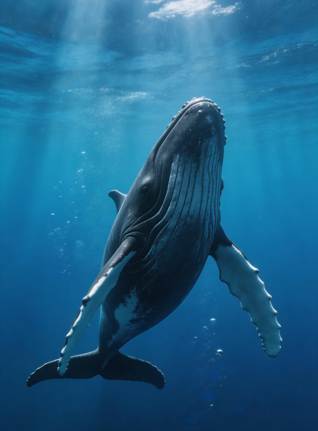 • 【大发现】: 这对超长“翅膀桨”可是大翅鲸的独门绝技!它们游泳转弯像溜冰一样灵活,还能拍打水面,溅起巨大的水花,好像在跳水上芭蕾!最神奇的秘密藏在里面:光滑的鳍里面,竟然藏着像我们人类一样的“小手”。有短短的上臂骨(肱骨),小臂骨(尺骨和桡骨),还有手腕骨(腕骨)。