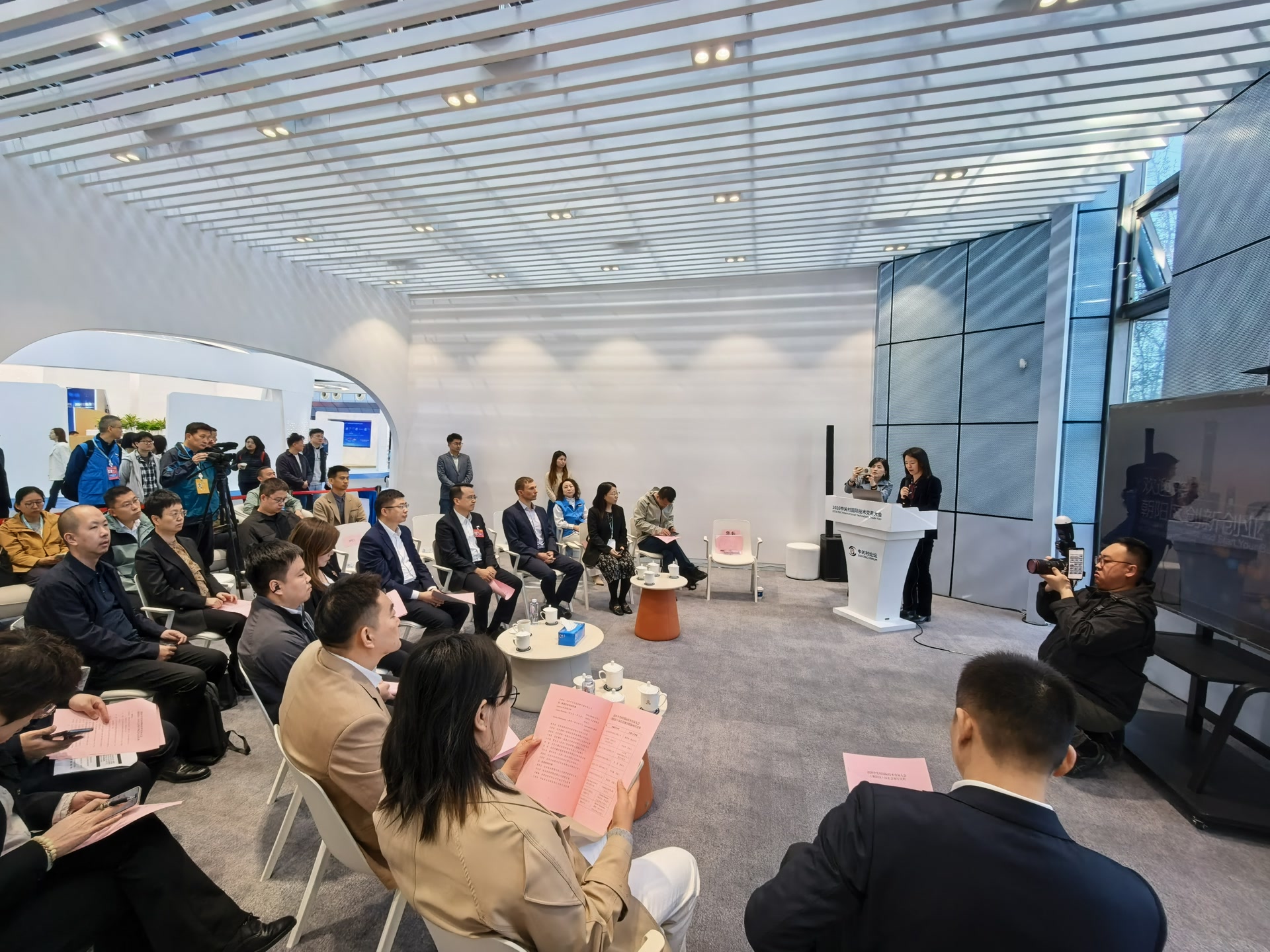 一处小小的半开放空间、三张圆形小茶几、二三十人促膝围坐——2026中关村国际技术交易大会“区长会客厅”,简简单单的布置非常接地气,拉近了大家交流的距离。最近几天,17场国际化的供需对接活动将在这里密集举行。
