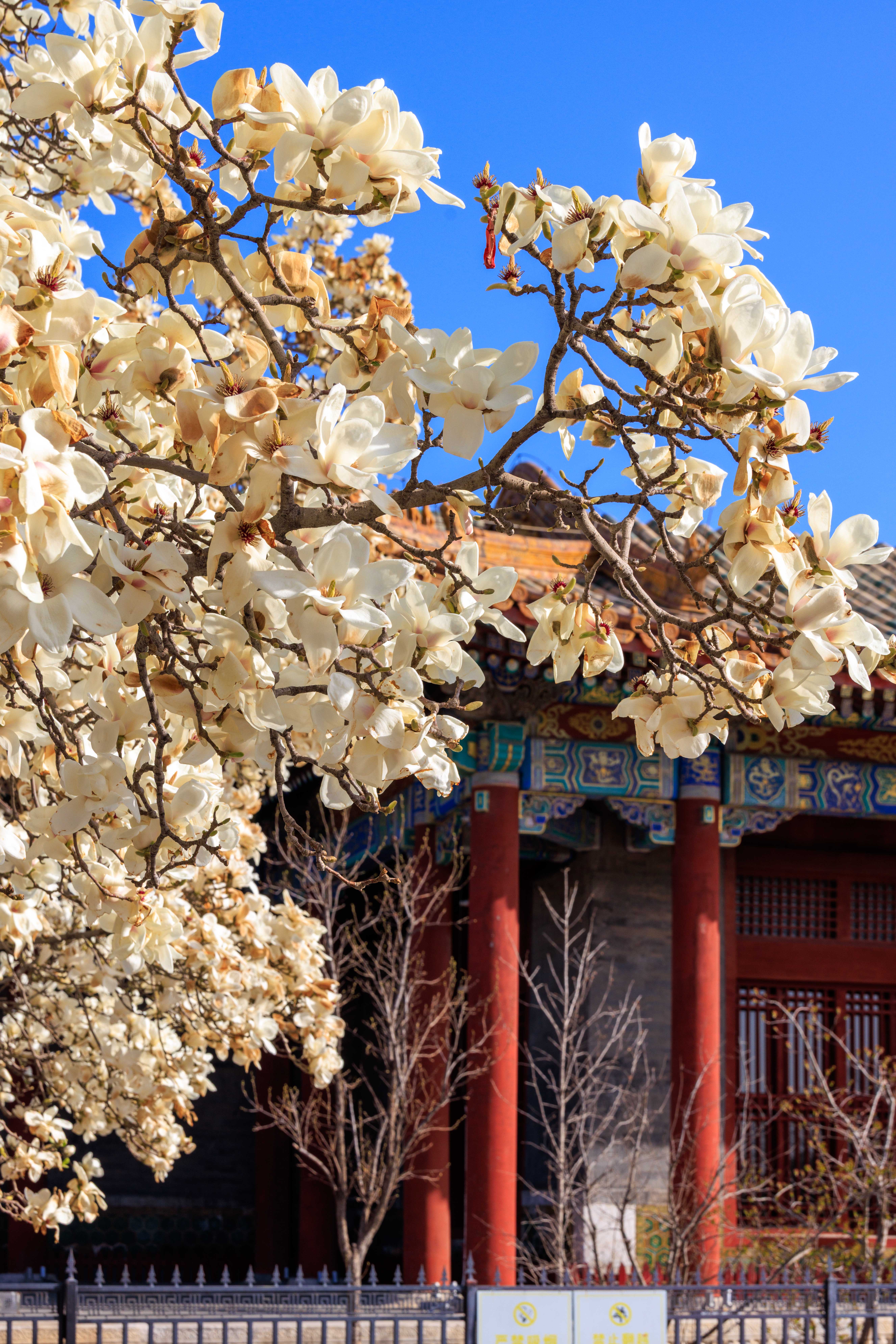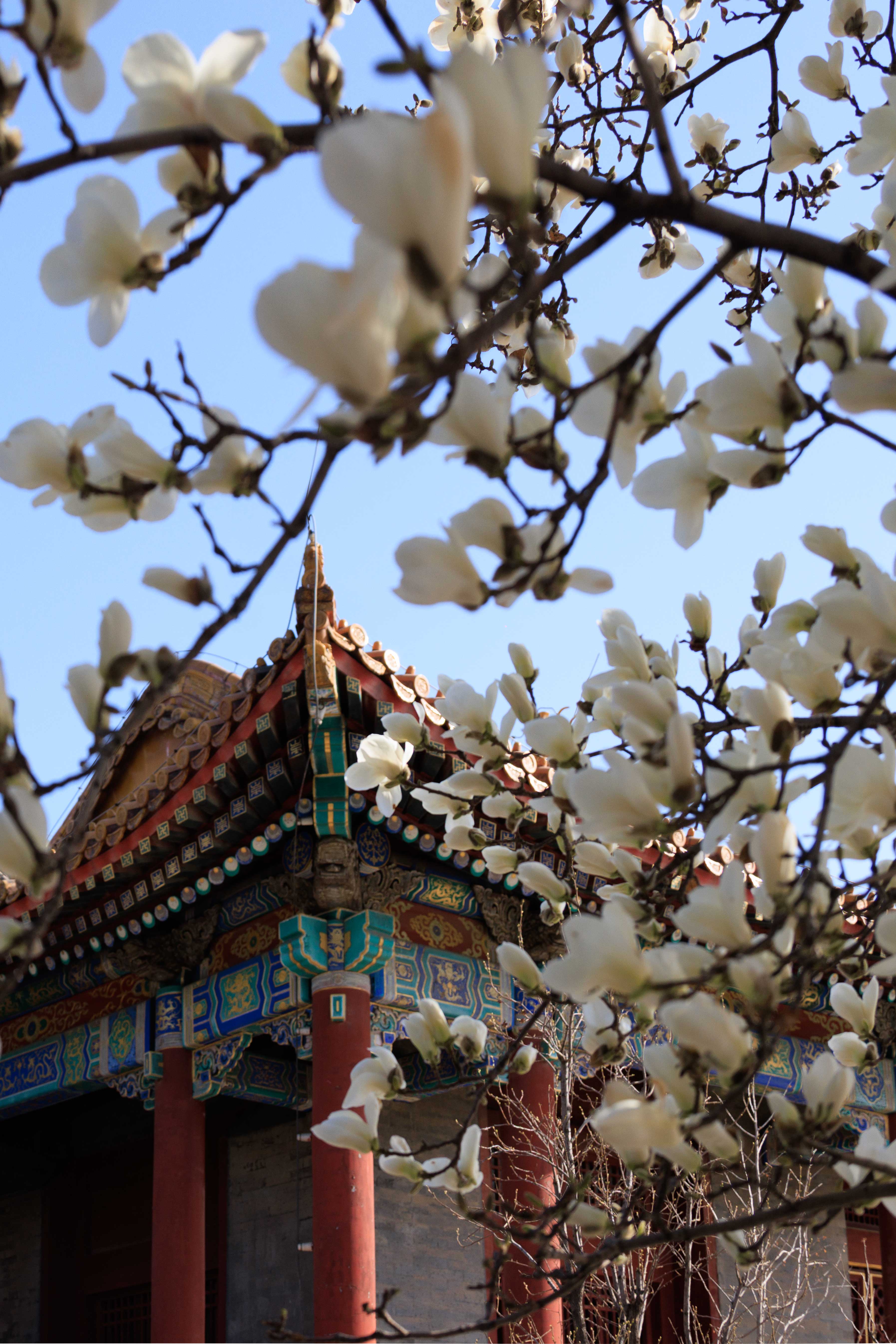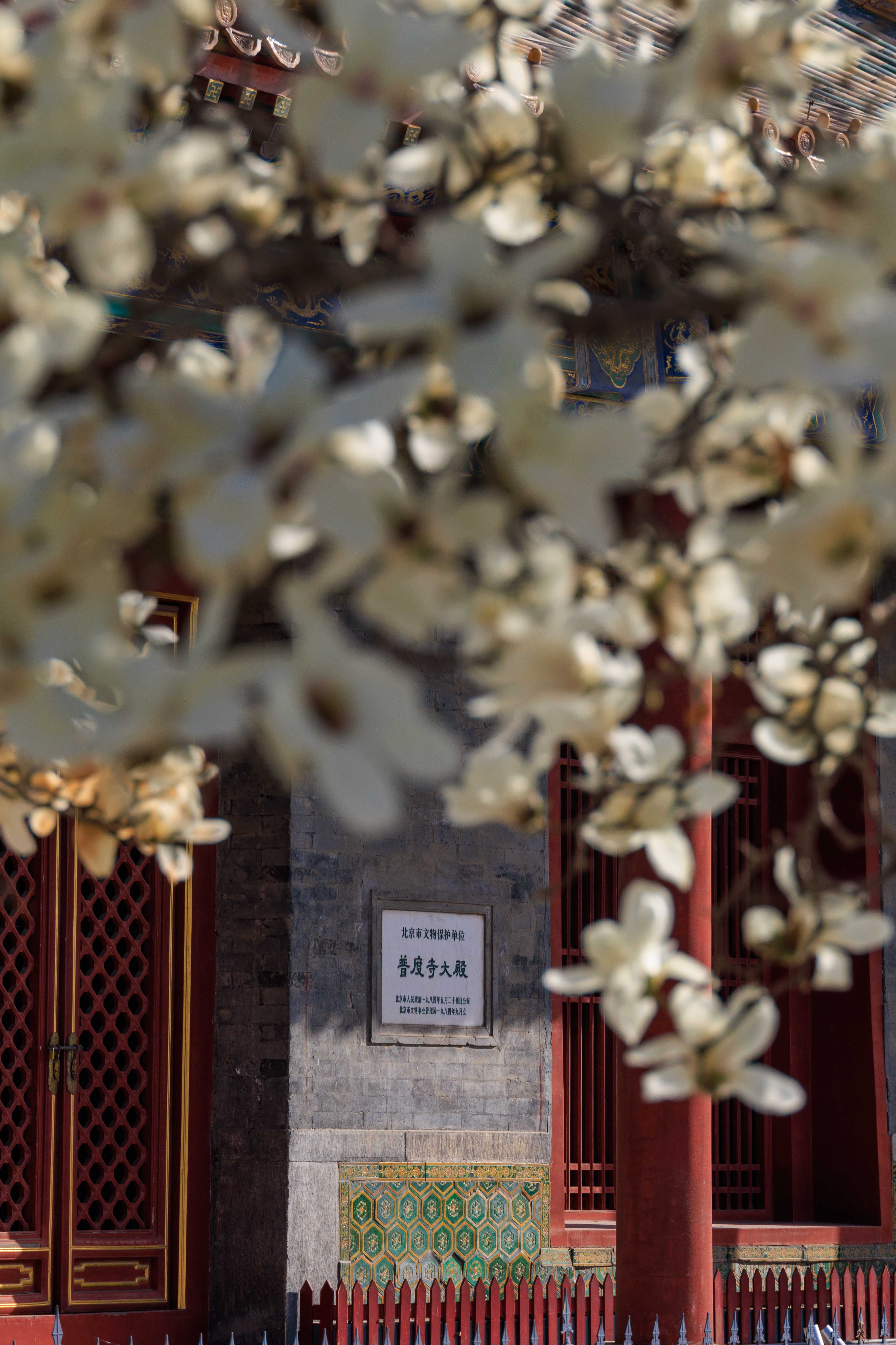 三百年古刹,一树洁白。玉兰在普度寺的红墙下盛放,见证过王府的煊赫,也沉淀了寺院的静穆。风过处,花落成诗,这是京城限定的温柔。