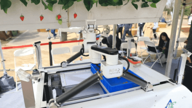 熊亚指着机器人灵巧的机械手说:“它包含软体的机械手,能够像象鼻一样去抓取草莓,使草莓的损伤率降到3%左右。”他进一步解释,团队还研制了互联的零展机械臂,获得了多个专利,“它的操作空间非常大,还能像做瑜伽一样‘劈叉’来避障,非常适合农业复杂环境的需求。”