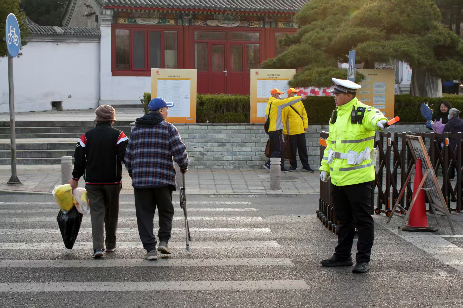石景山交通支队民警介绍,在八宝山、福田公墓周边的道路主要节点位置,均设置了指挥疏导岗位,全力维护路面交通秩序,引导车辆有序通行。