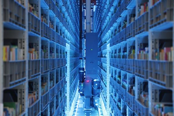 这座地下智能立体书库,是全国最大的地下无人智能书库。它层高21.55米,货架高达18米,可容纳400万册图书,出入库效率每小时可达1651箱,读者预约图书后,10分钟就能拿到手,用科技大幅缩短了借阅时间,提升了服务效率。