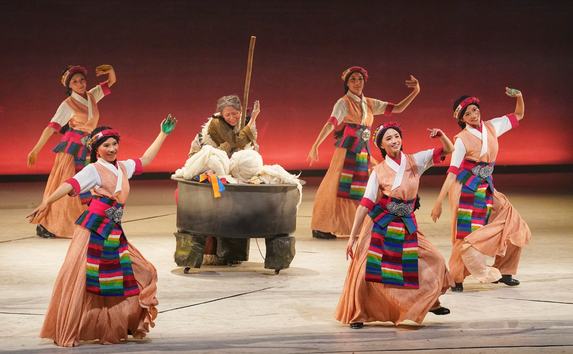 将踢踏舞升格为完整的舞剧,看似一字之差,却凝聚了主创团队无数心血。舞剧内在要求不仅展示舞蹈技巧,更需兼顾叙事结构,《扎西夏卓》通过编排,让踢踏舞不仅展示藏族同胞节庆时的欢快律动,还能表现赶羊、洗染羊毛等劳作场景,并承担起相应的叙事功能。两代人的时空交错与成长故事,在舞台上徐徐展开。