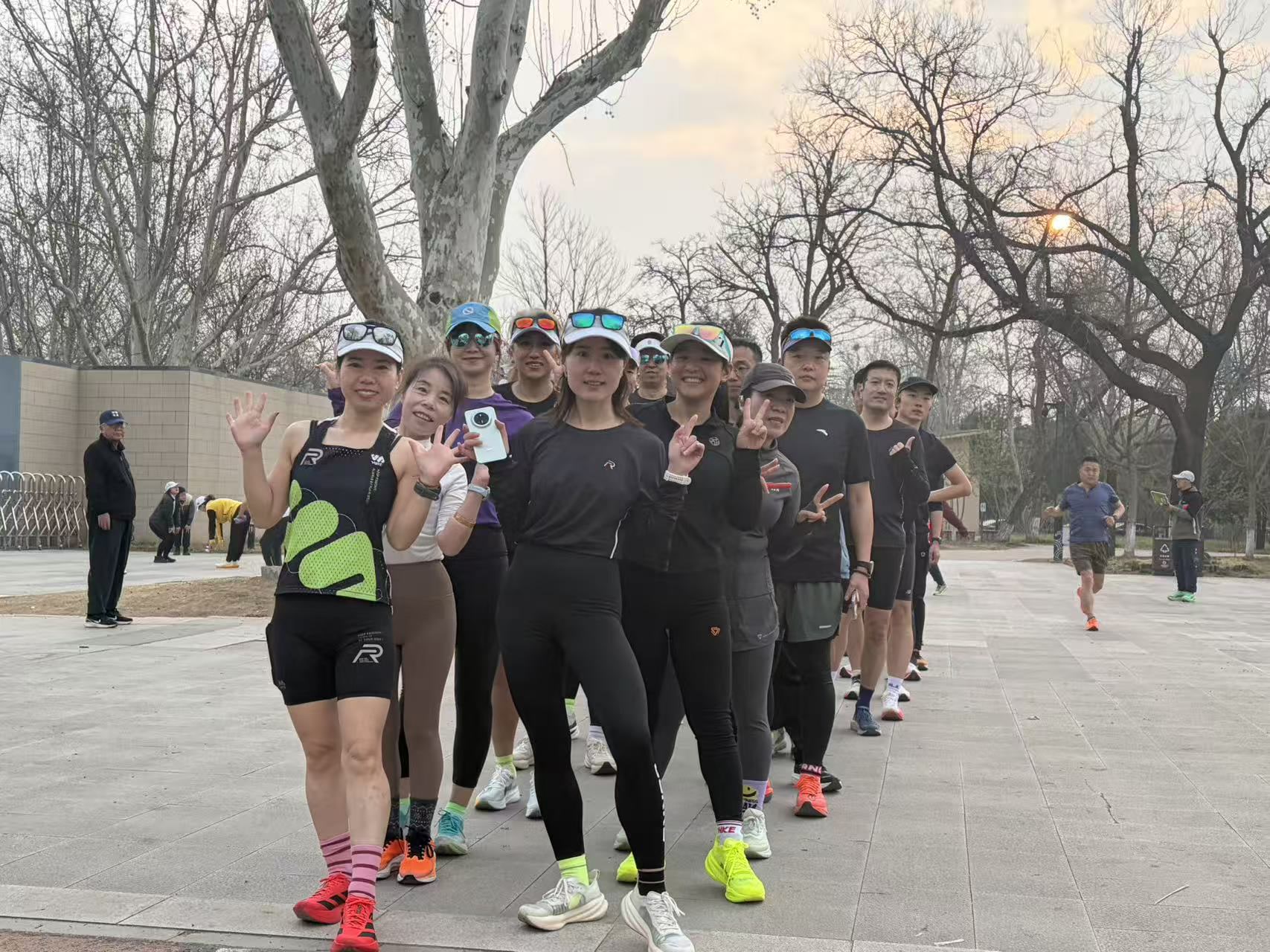 不到清晨6点50分,龙潭中湖北门广场已是一片热闹景象。四五十名跑友身着各色运动服,有的压腿拉伸,有的轻声交谈,共同等待着活动开场。