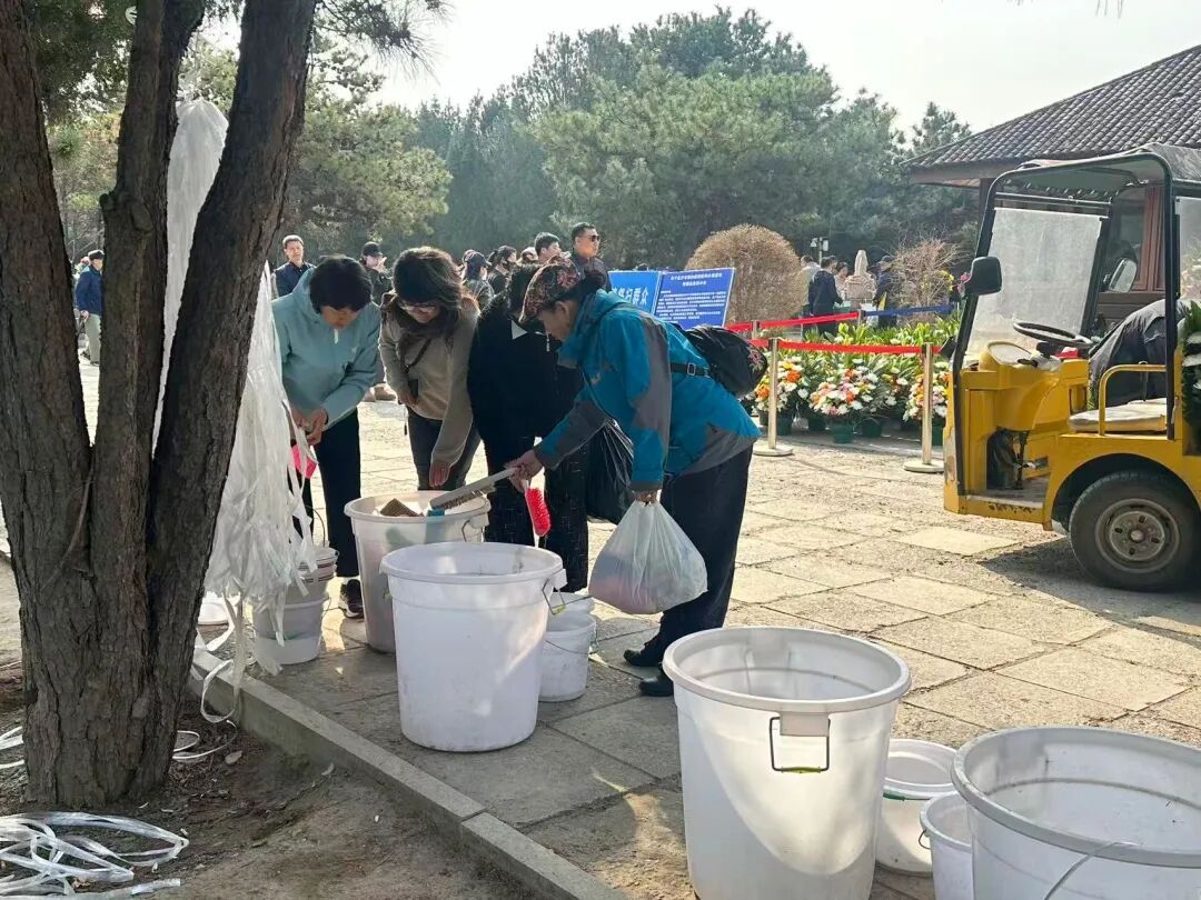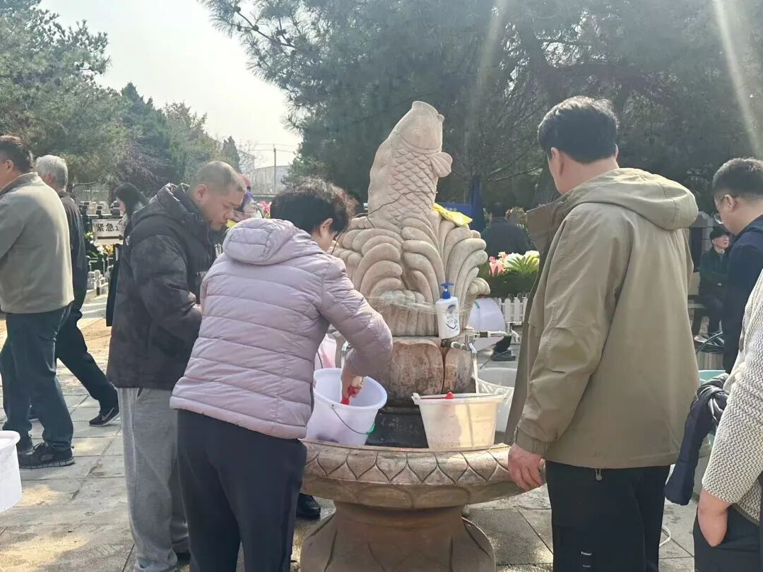 走进陵园,便民服务点不时有市民前来借用扫帚、水桶、描字工具等祭扫用品,工作人员耐心引导,为市民提供贴心的祭扫服务。