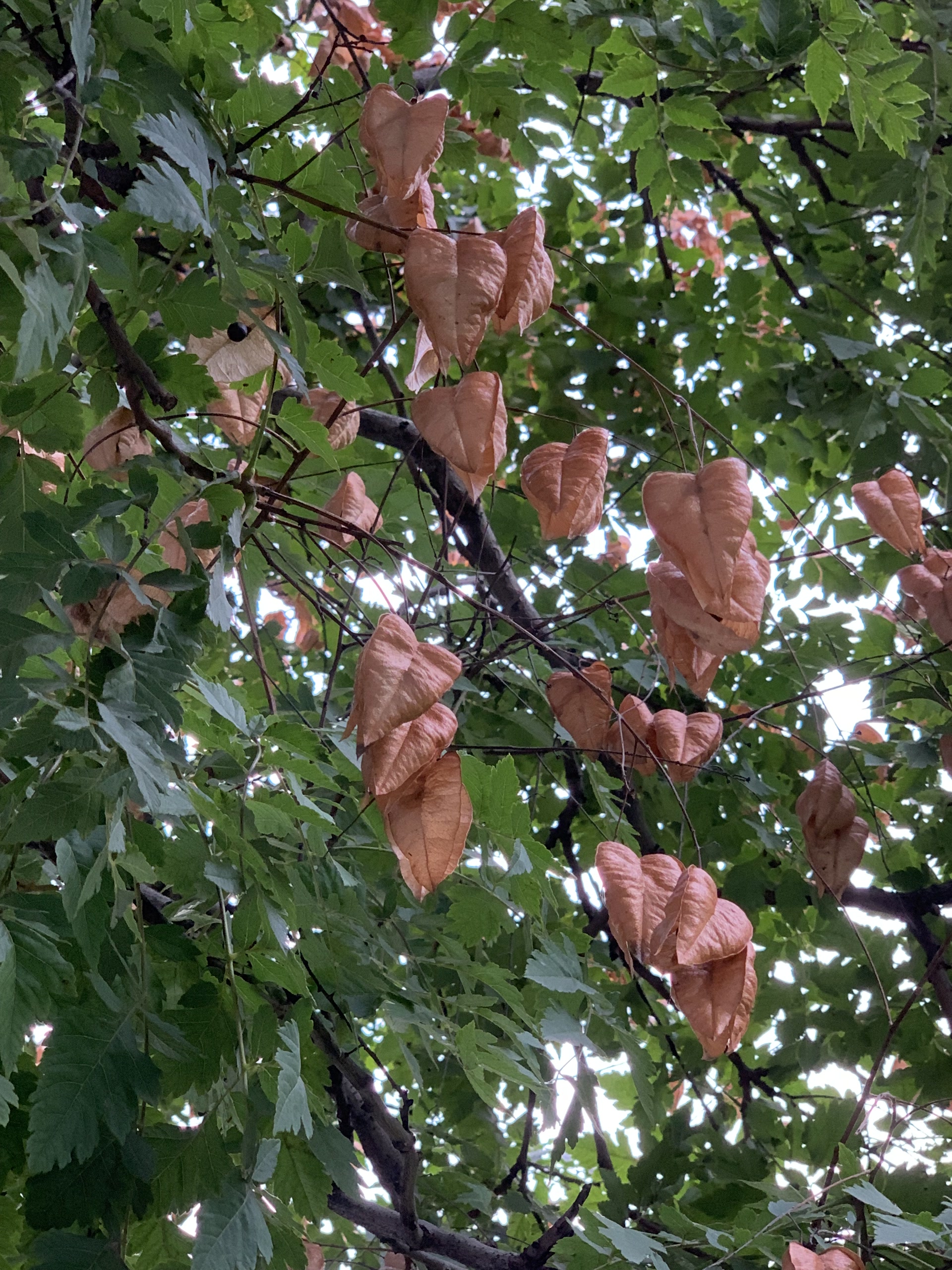 栾树还有一个名字叫黑叶树,我一直没弄明白为什么这么叫它。我想在它的小灯笼照耀下再找找,嘿嘿。