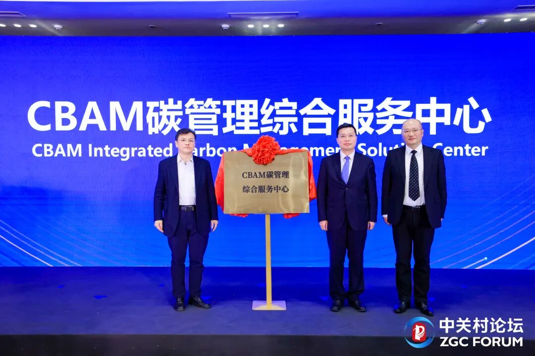 东城园管委会主任成九雁为CBAM碳管理综合服务中心揭牌。