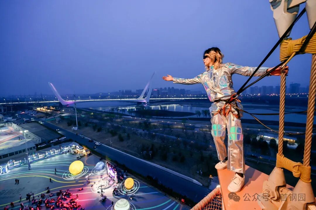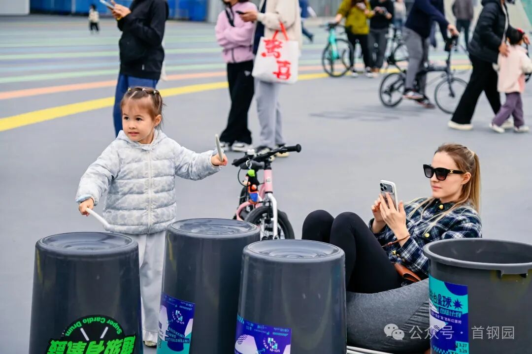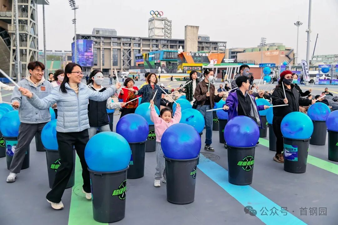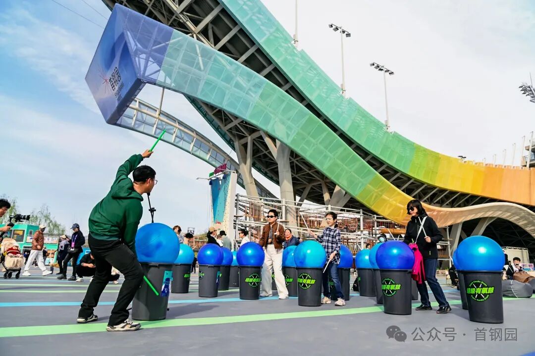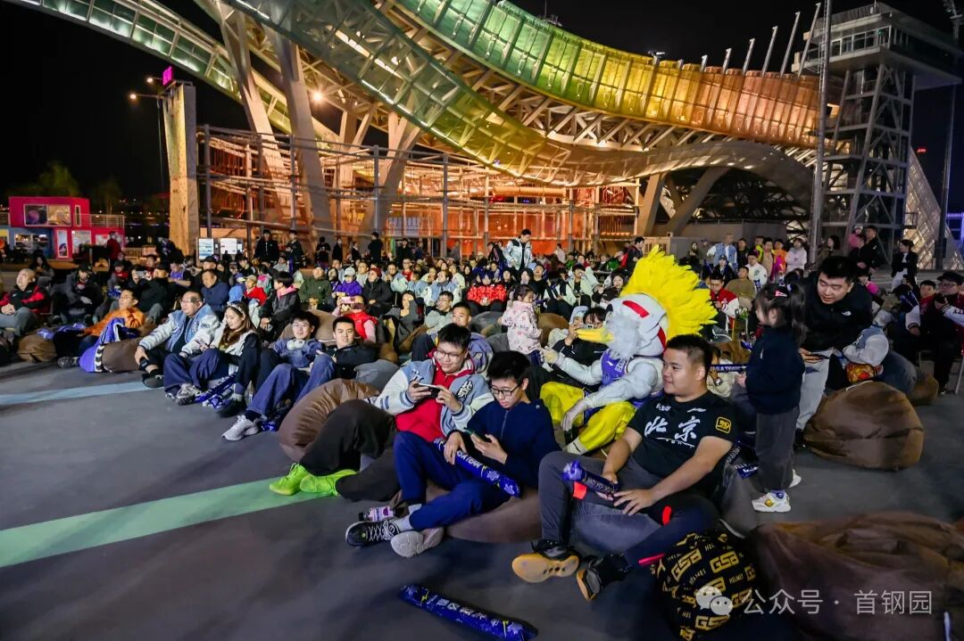 “跳台星球登陆计划”在首钢滑雪大跳台设置六大主题互动装置,将“跳跃”的奥运基因转化为可参与的游戏:游客可以在“JUMP!击掌星球”挑战弹跳高度,在“空气吉他” 体验区零基础演奏乐曲,通过“数字星际:AR智慧课堂”的AR技术探索知识,或借助VR设备沉浸式“漫游三高炉”。“星际有氧鼓” 的集体节奏互动和“星球抽奖”的随机福利,持续吸引着各年龄段游客参与。3月27日开幕当天与篮球观赛活动相结合,“京聚云观赛”CBA篮球比赛第二现场,约200个观赛座椅和充气沙发,为球迷打造露天氛围观赛殿堂。