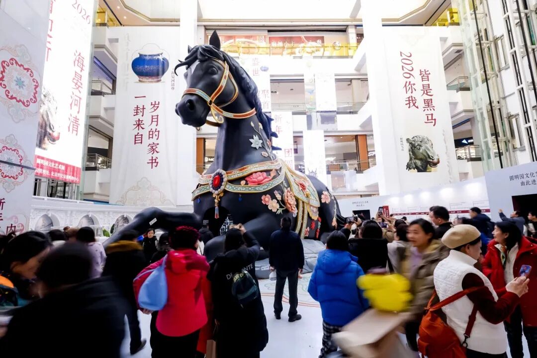 2025年12月至2026年3月,北京世纪金源再度打造商业文化活动标杆——联合圆明园管理处呈现 “兽首迎新・海晏河清” 文化艺术展,这也是圆明园首次与核心商业综合体的深度合作。现场设置16米原创巨型 “黑马” 艺术装置、20余件国宝级展品复刻及3D西洋楼复原场景,搭配百余种文创产品。创新实现“文化体验+数字科技+商业场景”的深度融合。