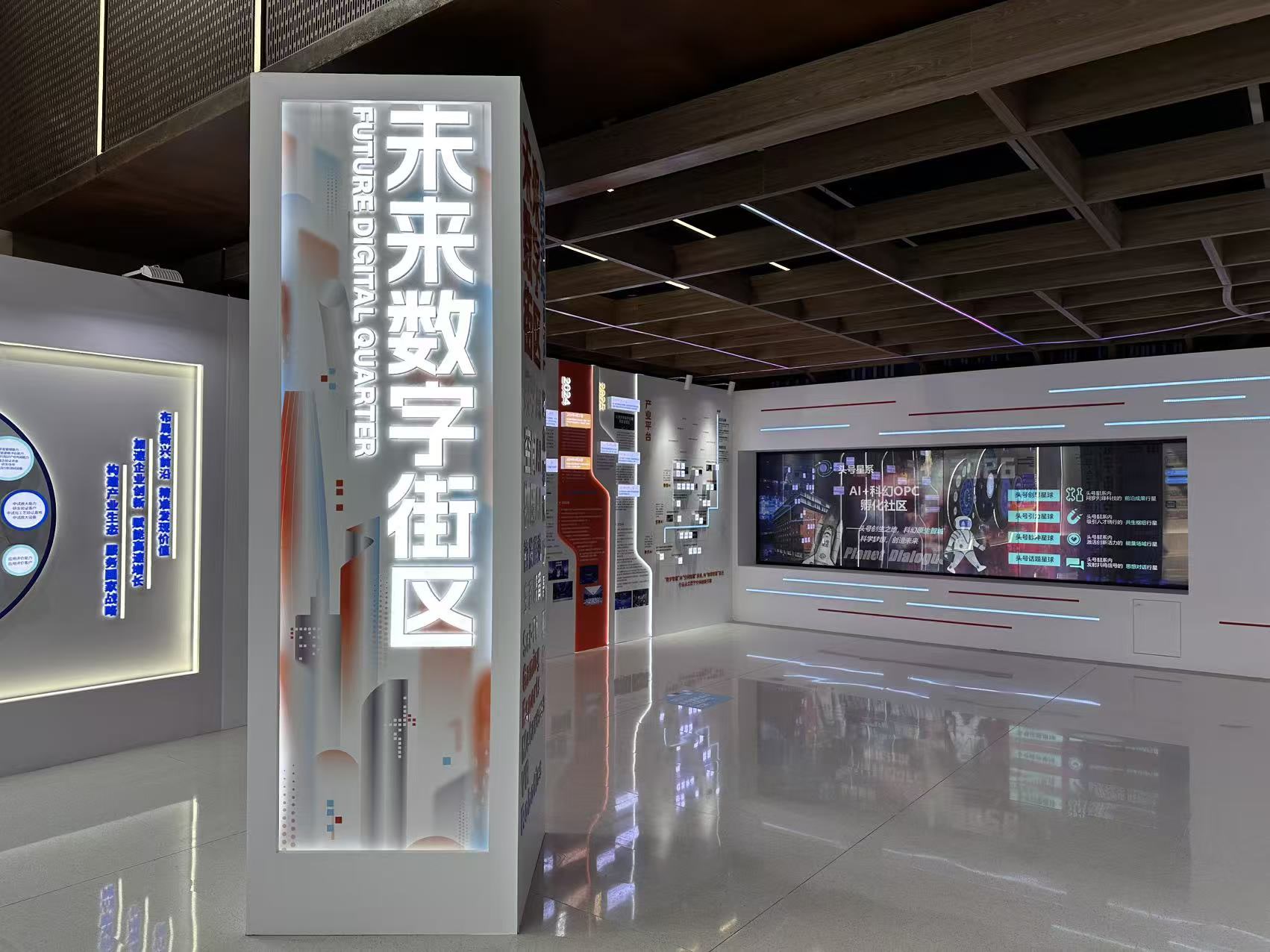 未来数字街区以中关村科幻产业创新中心2号楼一层为首发区,联动周边特色区域,构建起“研发在楼上、验证在楼下、展示在街区、赋能在全域”的创新空间格局。街区分为技术展示区、创新孵化区、沉浸互动区三大功能分区。其中,技术展示区构建了从基础资源层、技术能力层到平台工具层、场景应用层的四层数字空间技术体系,将算力、算法、数据等核心基础要素,与智能感知、认知计算、模态生成等前沿核心技术深度融合,为数字技术从实验室走向产业应用搭建起高效便捷的转化桥梁。
