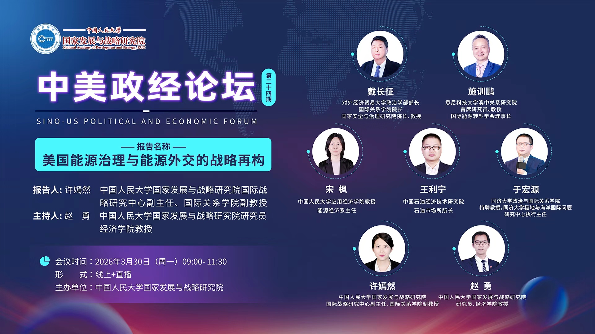 京直播|中国人民大学国发院中美政经论坛(第二十四期)(直播结束)