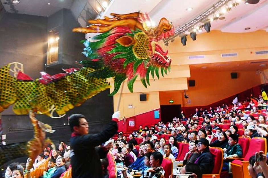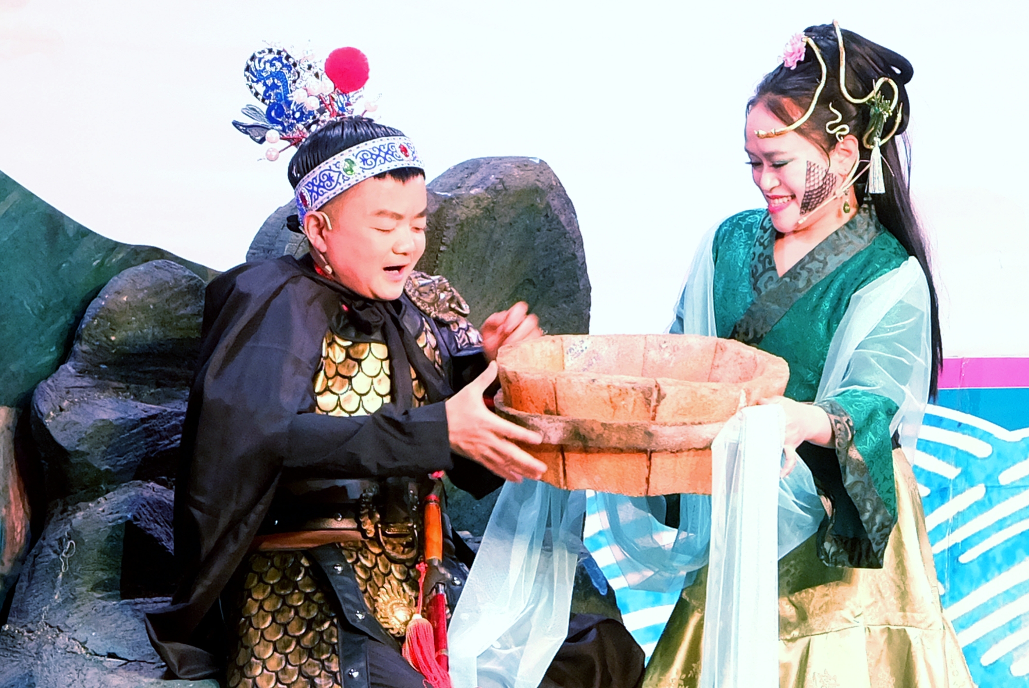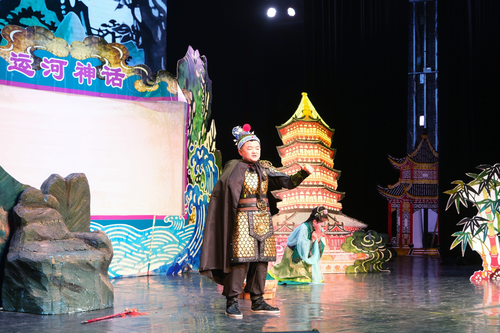 作品创新融合皮影古韵、儿童互动与沉浸式舞台,采用真人与皮影同台演绎,虚实交织,兼具观赏性与趣味性。剧情以京杭大运河文化为核心,串联燃灯塔、白浮泉、镇水兽等文物与神话传说,以家国情怀为主线,讲述龙子蚆夏的成长与善恶交锋,现场互动热烈。
