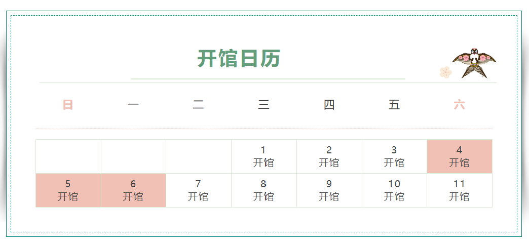 2026年4月4日至4月6日(周六至周一)正常开放(9:00-17:00,16:30停止入馆)。