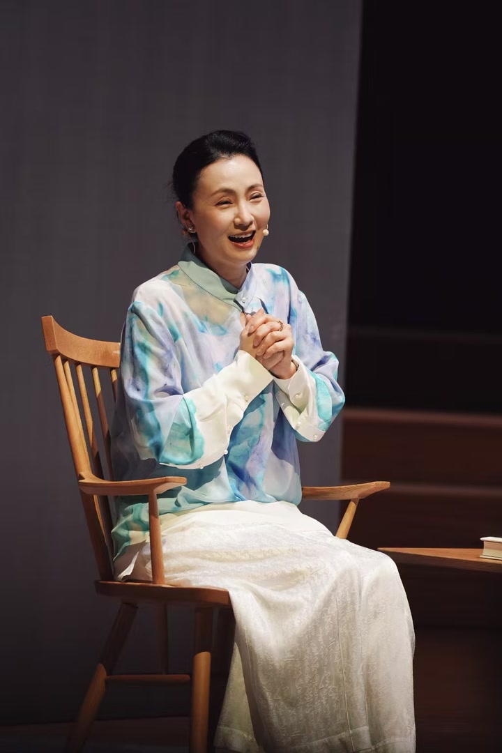 陶虹老师以鲁迅散文集《野草》中的一个片段为例:在一场满月宴上,众人纷纷夸赞孩子“将来升官发财”,这些话未必真实,却讨得主人欢心;有个客人直言“这孩子将来一定会死”,这话虽是事实,却换来了一顿痛打;而有人用一句“啊呀!这孩子呵!您瞧!多么……哈哈!”同时辅以肢体语言,既说了“真话”又不得罪人,还能让主人开心。陶虹老师的演绎生动传神,将人物的神态刻画得入木三分,引得台下笑声阵阵。
