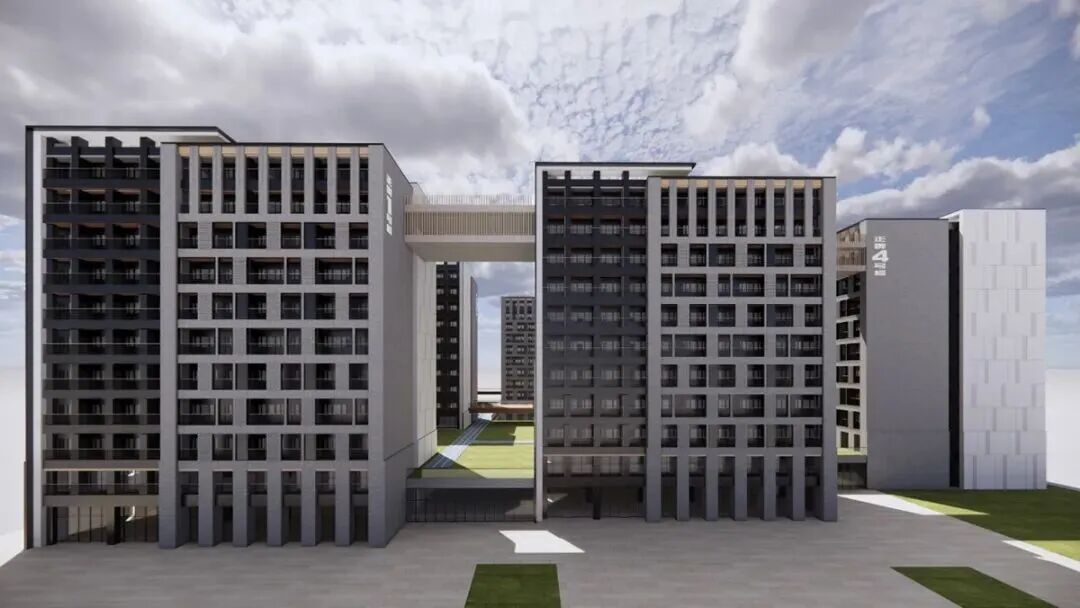 其中,新建学生宿舍面积达14万平方米,每间宿舍配备阳台、独立卫生间和独立淋浴间,可满足约6000名学生的住宿需求。教师宿舍总面积超8.3万平方米,提供约800套教师住房,并配套建设托育中心、医疗服务中心,进一步提升学校的整体办学条件,为师生营造更加舒适、便利的生活环境。