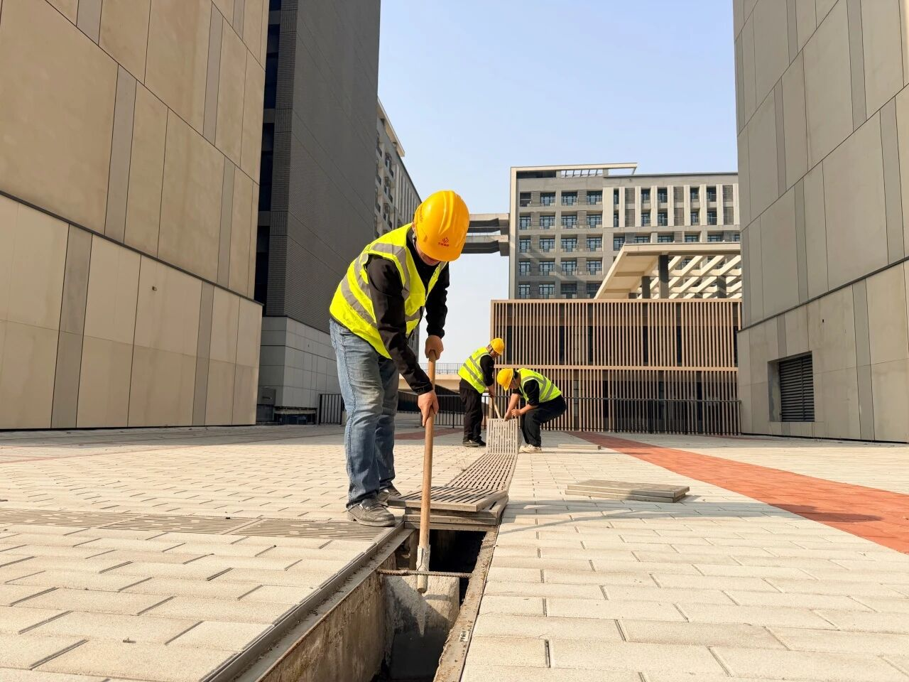施工现场分区作业有序推进。室外,工人们在施工区域内进行道路基础作业;室内,粉刷、装修工作同步推进。“我们正全力保障工程质量、抢抓施工进度,确保各项建设任务按节点有序按期完成。”项目负责人王旭鹏介绍,随着学生宿舍精装修接近尾声,项目竣工验收后将有更多学生入住功能齐全、环境舒适的新宿舍。