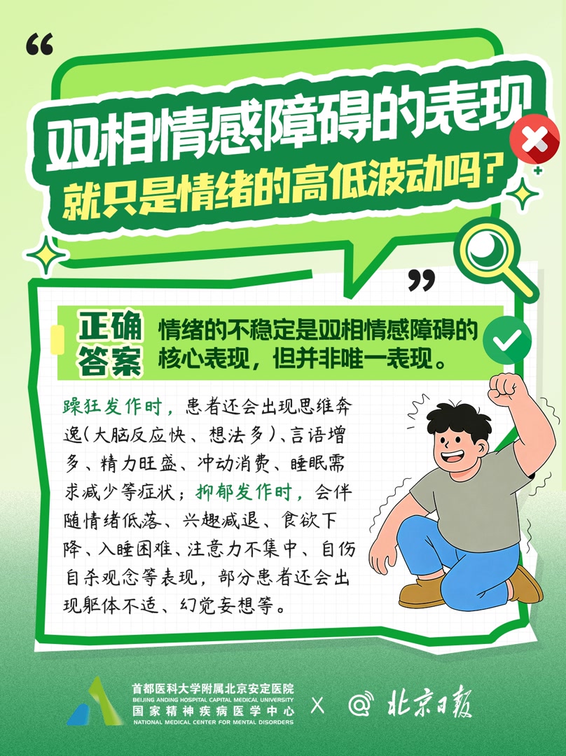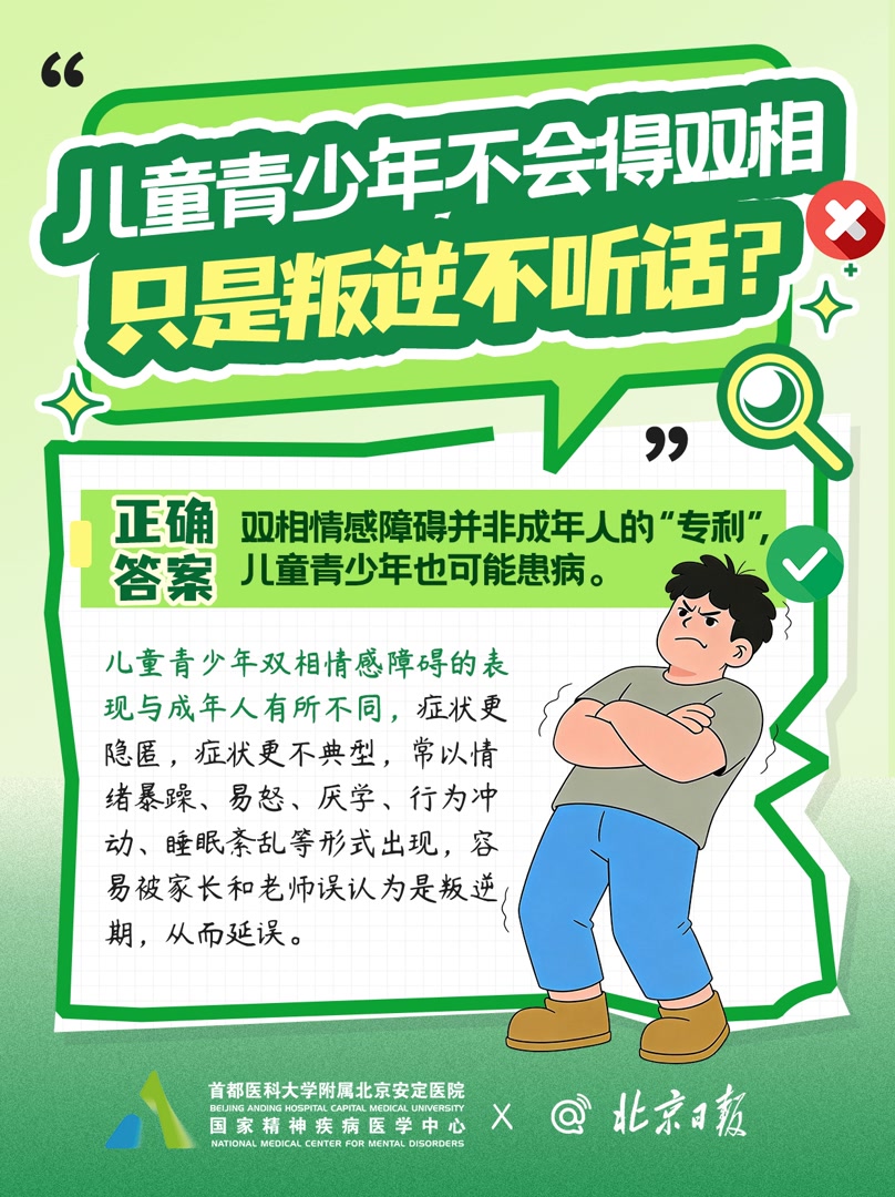 今天是世界双相情感障碍日。我们梳理出大众最关心的十大认知误区,用简单易懂的专业解答,打破偏见,带大家真正读懂双相情感障碍。
