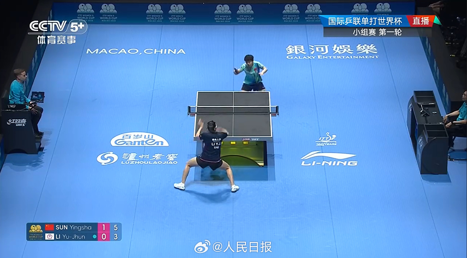 2026澳门乒乓球单打世界杯小组循环赛,孙颖莎3比0战胜李昱谆,取得开门红!