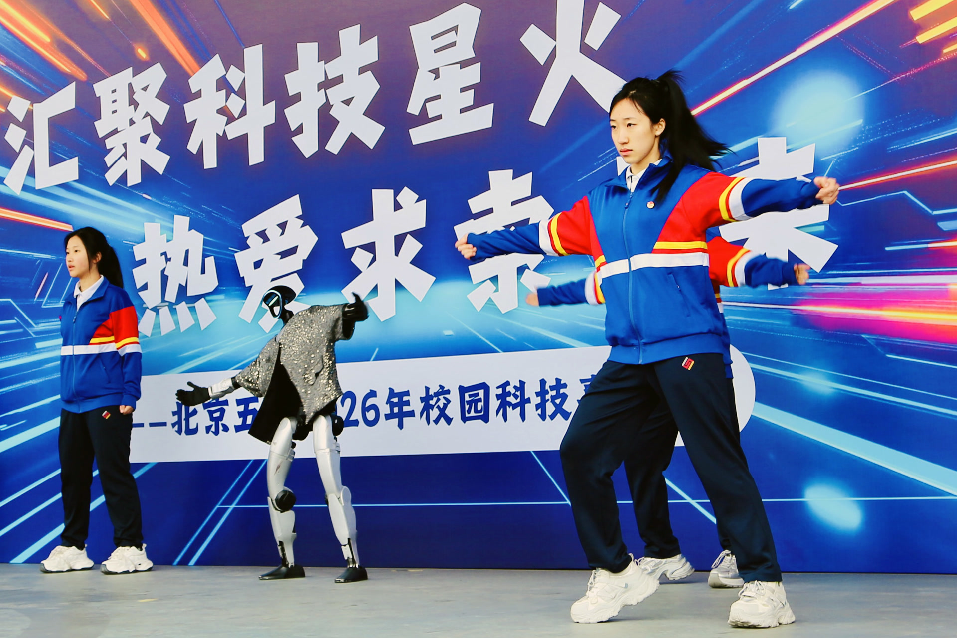 开幕式上,最引人注目的莫过于机器人与学生社团的创意融合表演:机器人“小树”精准利落的动作,与街舞社团、武术社团舒展洒脱的舞姿、刚劲铿锵的招式完美融合。VR(虚拟现实)沉浸式体验、电磁探秘实验、机器人足球赛……当日,学生们还体验了各类科创活动,近距离感受科技魅力。