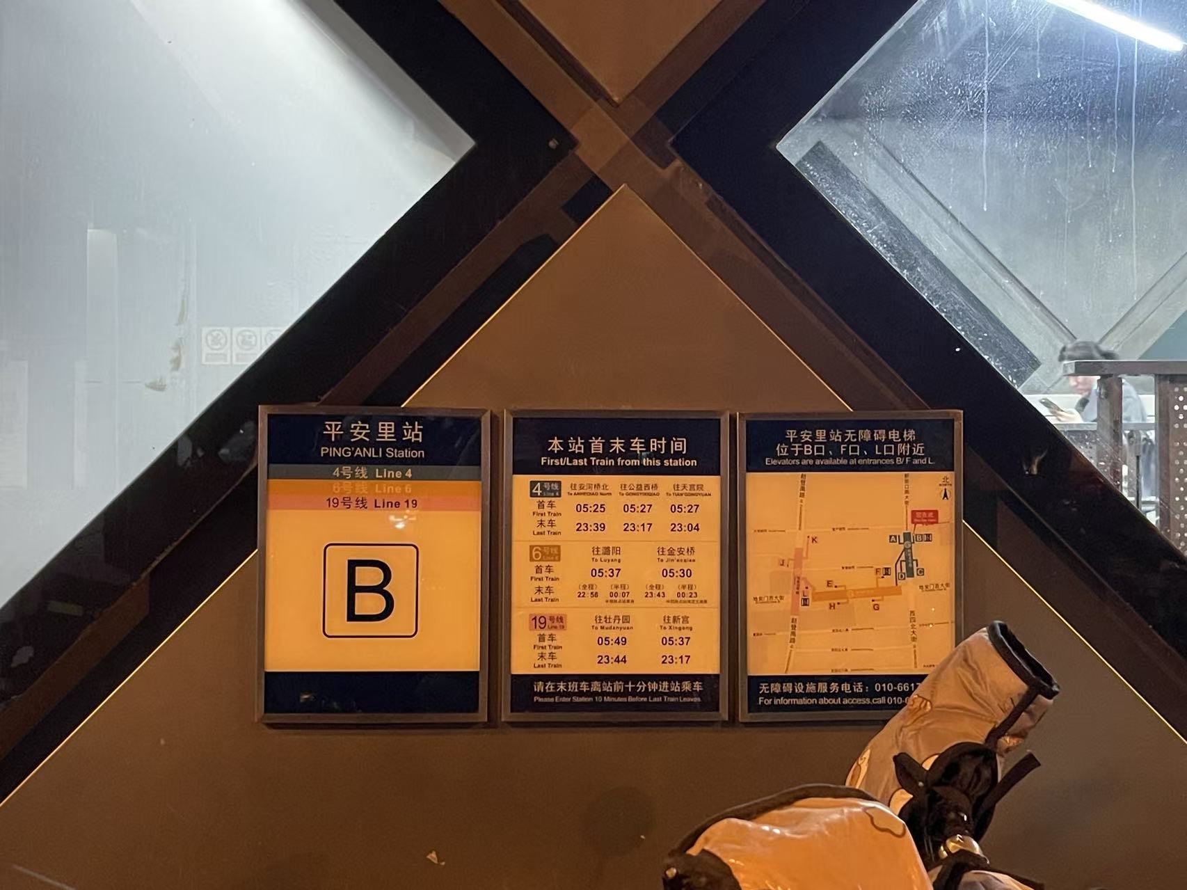 记者在多处出入口外均见到了黄女士所说的信息栏,上面标注了11个出入口的位置,却未标明进站扶梯或直梯信息。不过记者留意到,平安里站每个出入口附近均有蓝色的无障碍电梯提示,显示电梯位于B、F、L口附近,并留有服务电话。站口内,侧墙处也有更详细的示意图,标注有直梯信息,但这些位置往往不如站外信息栏醒目,很多乘客并未留意到。至于每个出入口的扶梯情况,记者在站内外未见到任何提示信息。