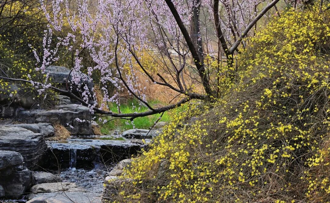 春色满园,风里的凉意也软了下来,催开了含苞待放的花蕾们。最先吸引视线的,便是路边一片明晃晃的黄——迎春与连翘挨得极近,各占一方天地,像是两个性格迥异的春日信使,把春天的消息递得分明又热烈。