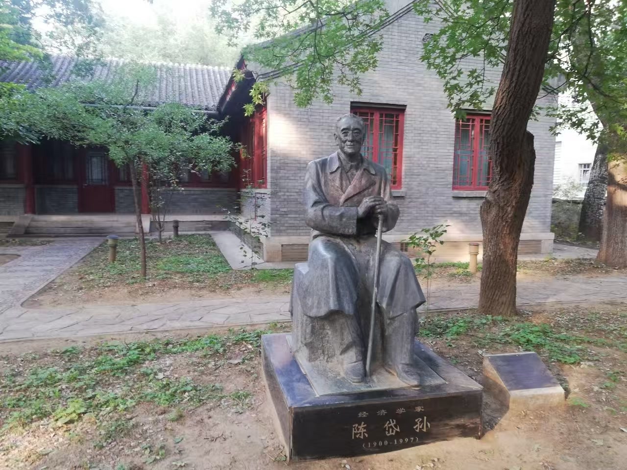 更令人遗憾的是,母亲最后一次探望陈岱孙时,本想带着我一同前往,可那时的我正处在叛逆期,最终没能同行,也因此错过了唯一一次见到这位大师的机会。再与他“相见”,便只能在燕南园55号院内的陈岱孙雕像前,拜谒这位大舅公了。