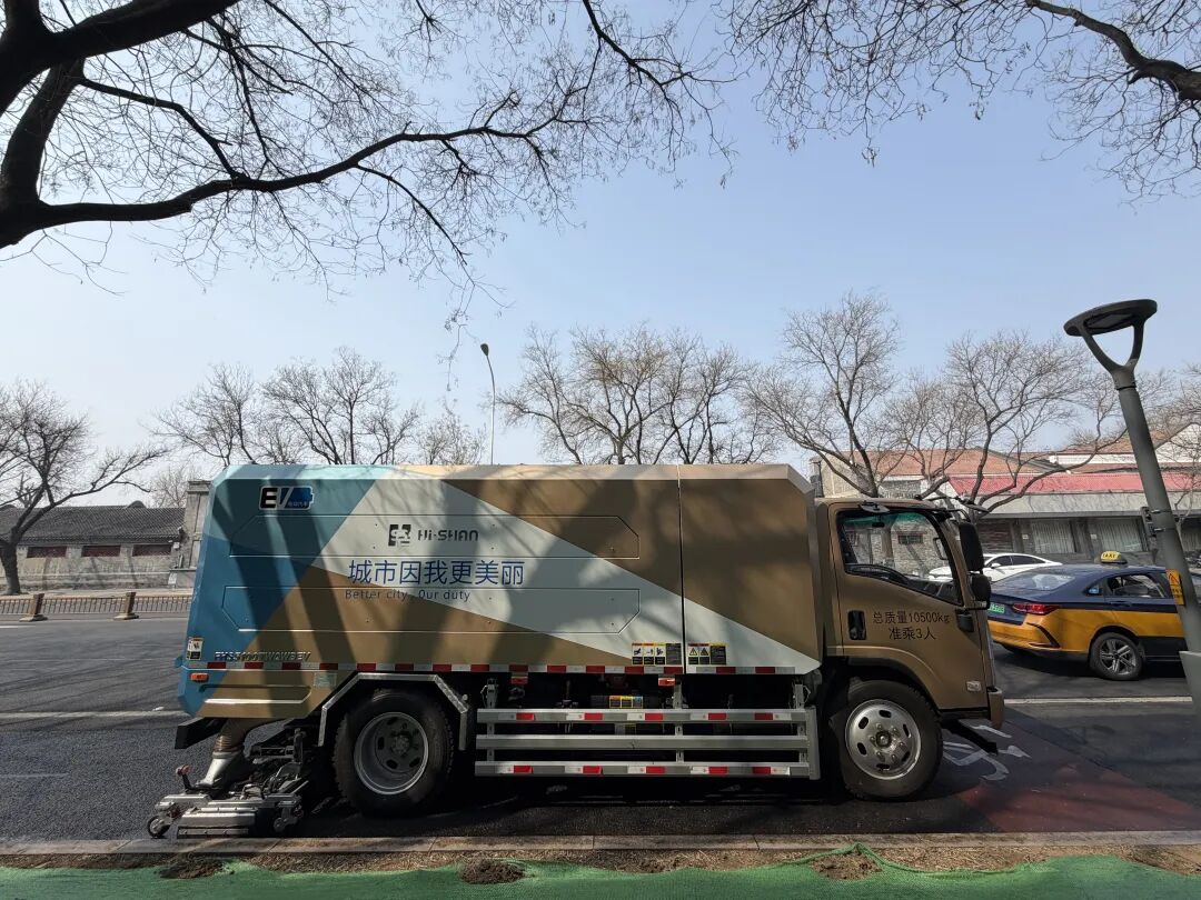 其卓越的清洁能力直接减轻了人工作业强度。以天坛周边为例,路两侧的行道树,春秋季会掉落飞絮和落果,堆积后像毛毡一样。新车作业后,路边浮土和凋落物基本都能被吸走,减少了工人二次清扫。以往老式车辆清洁后,缝隙里的顽固污渍和毛絮仍需人工接水管冲刷,效率很低。“现在过一遍就很干净,节省的人力可以用于增加擦拭果皮箱、加强巡回保洁的频次,整体作业质量提升了。”东城区环境卫生服务中心三所业务组组长刘占春说。