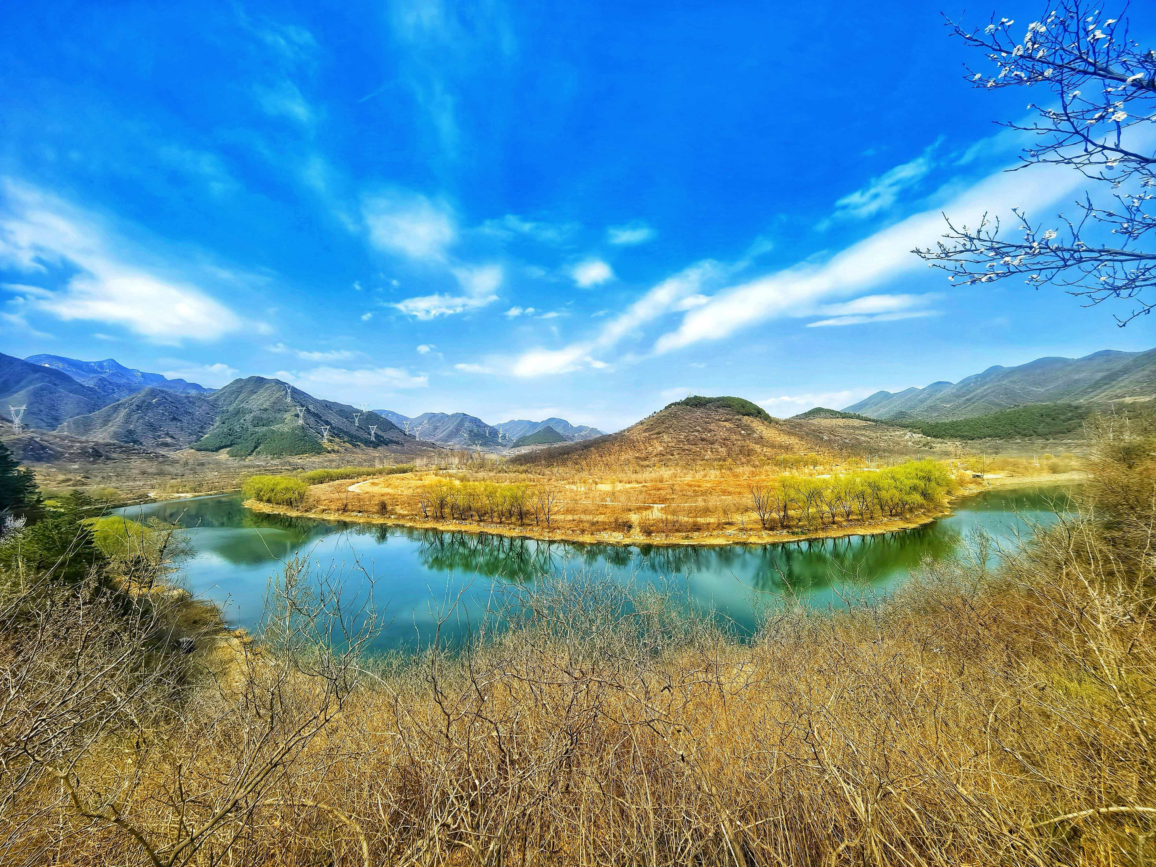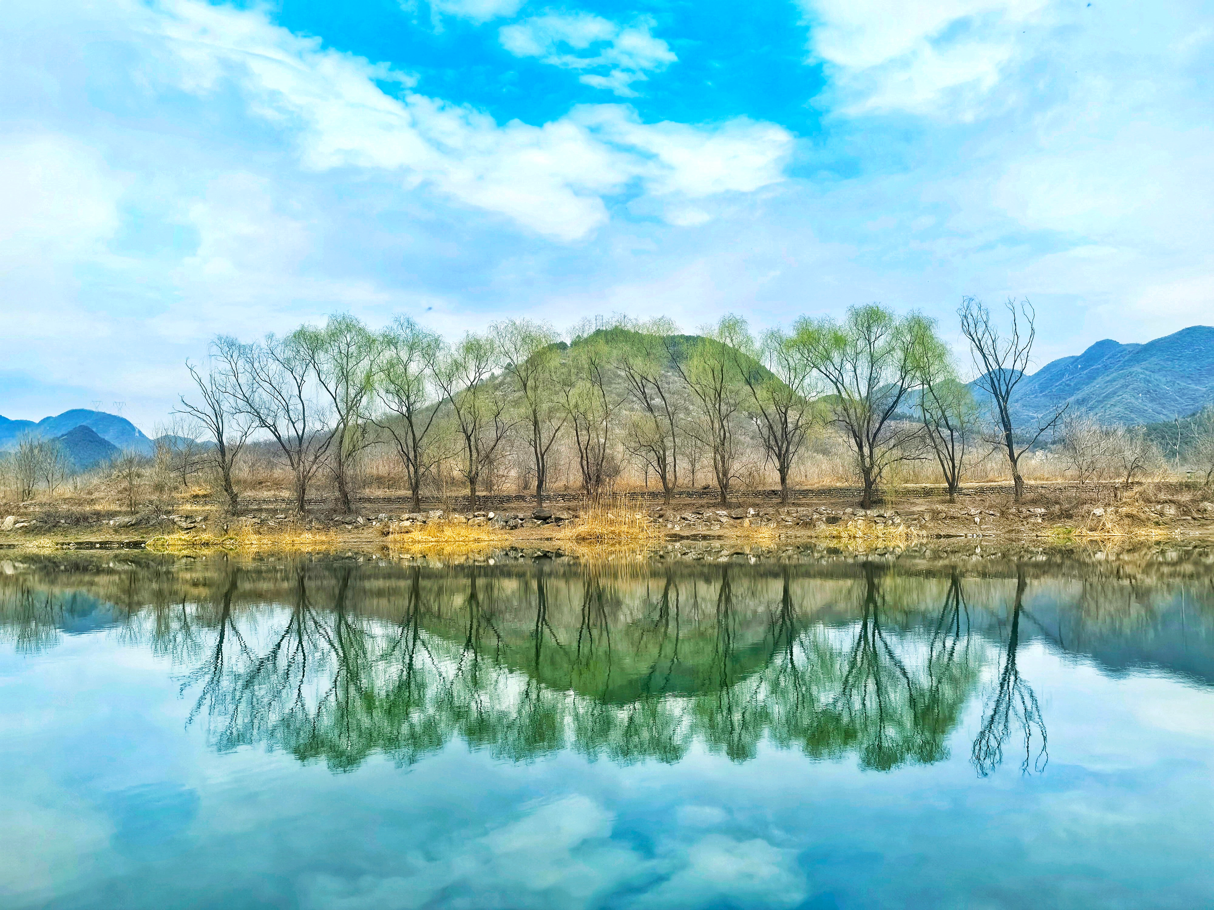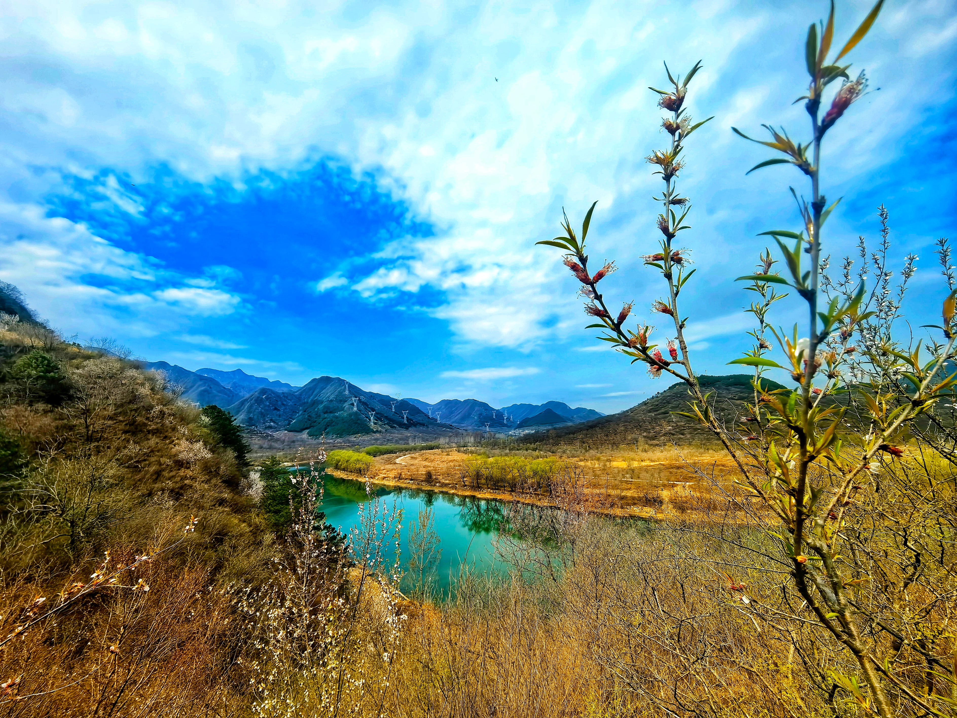 3月31日雨后,怀柔九渡河春色宜人,晴空万里,春意盎然。