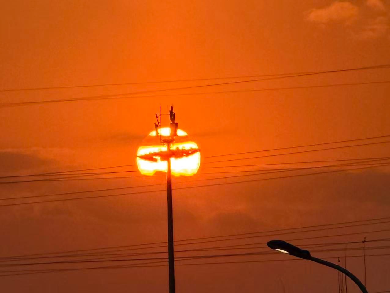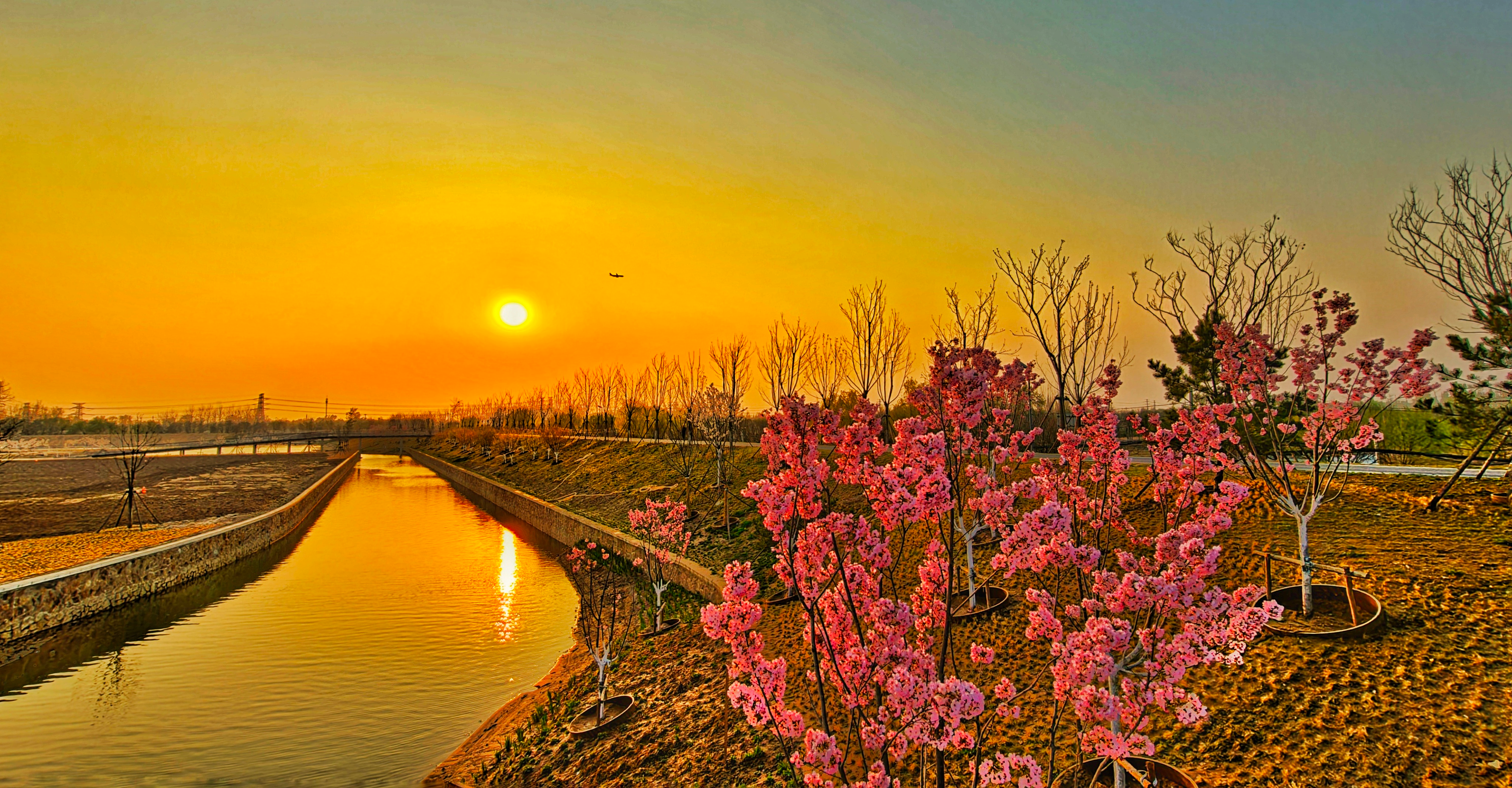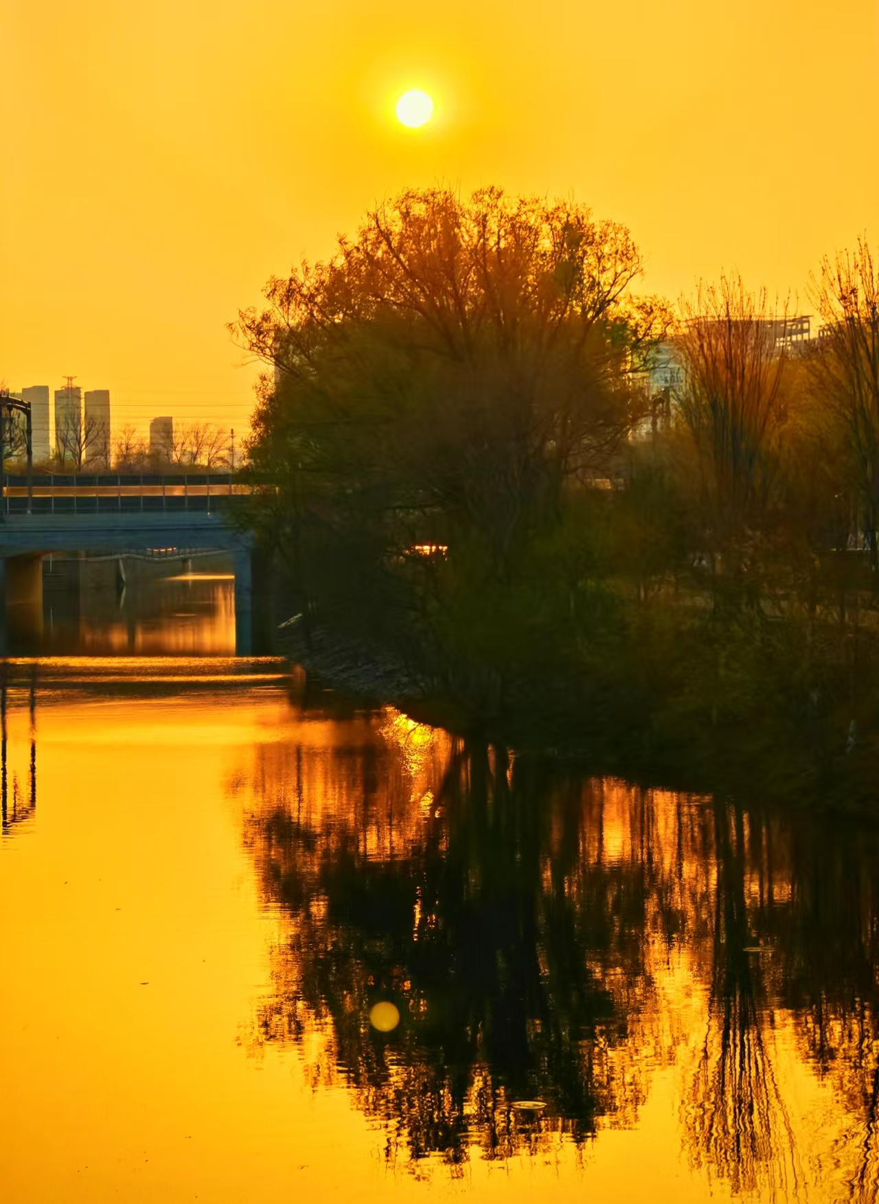 三月的最后一天,以一场绮丽日落温柔收尾。余晖似金纱,轻披世间万物,天际红日似火,燃烧春日浪漫。