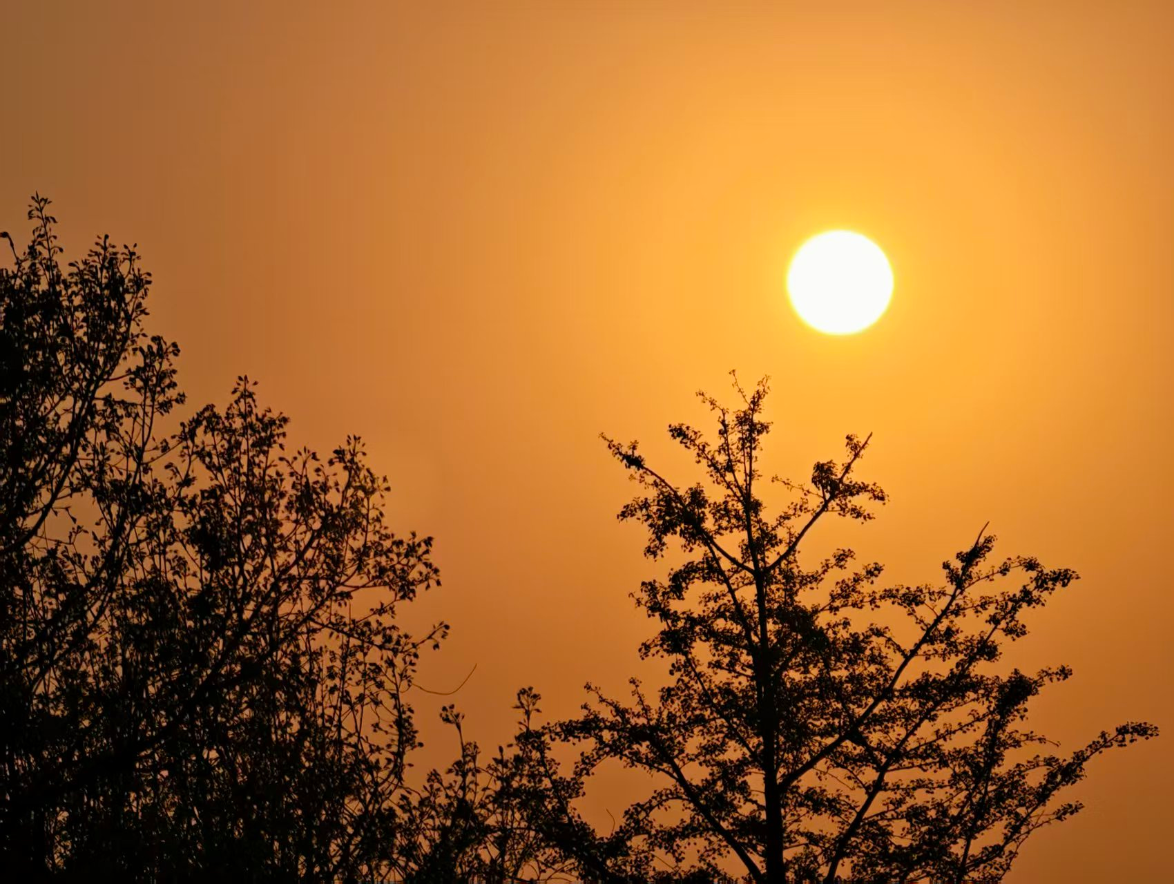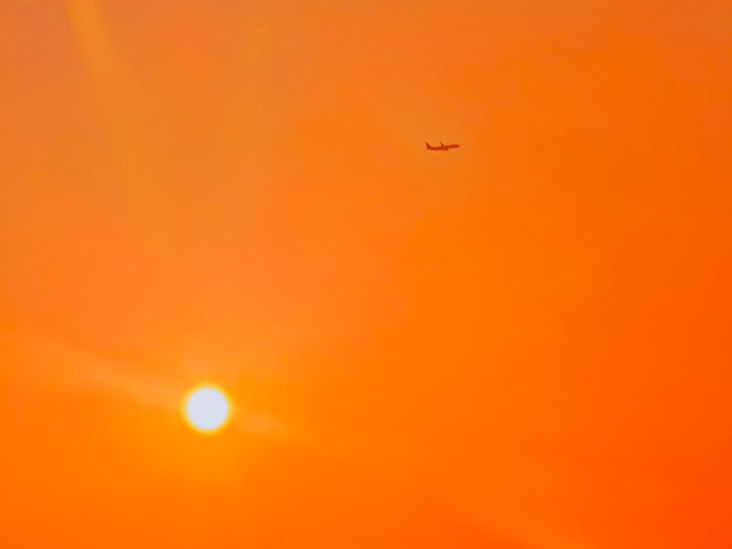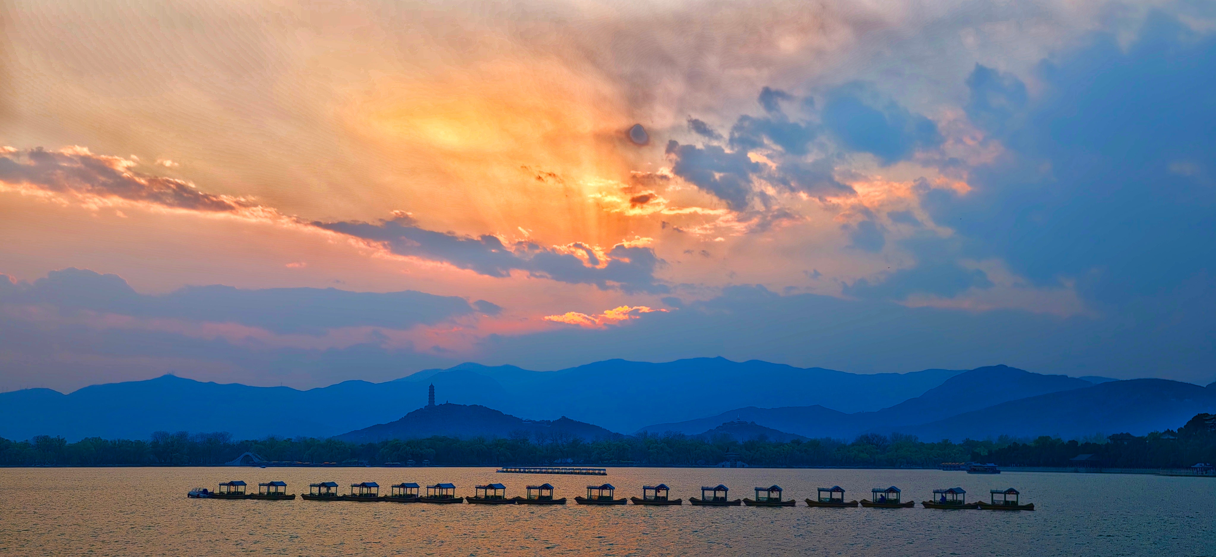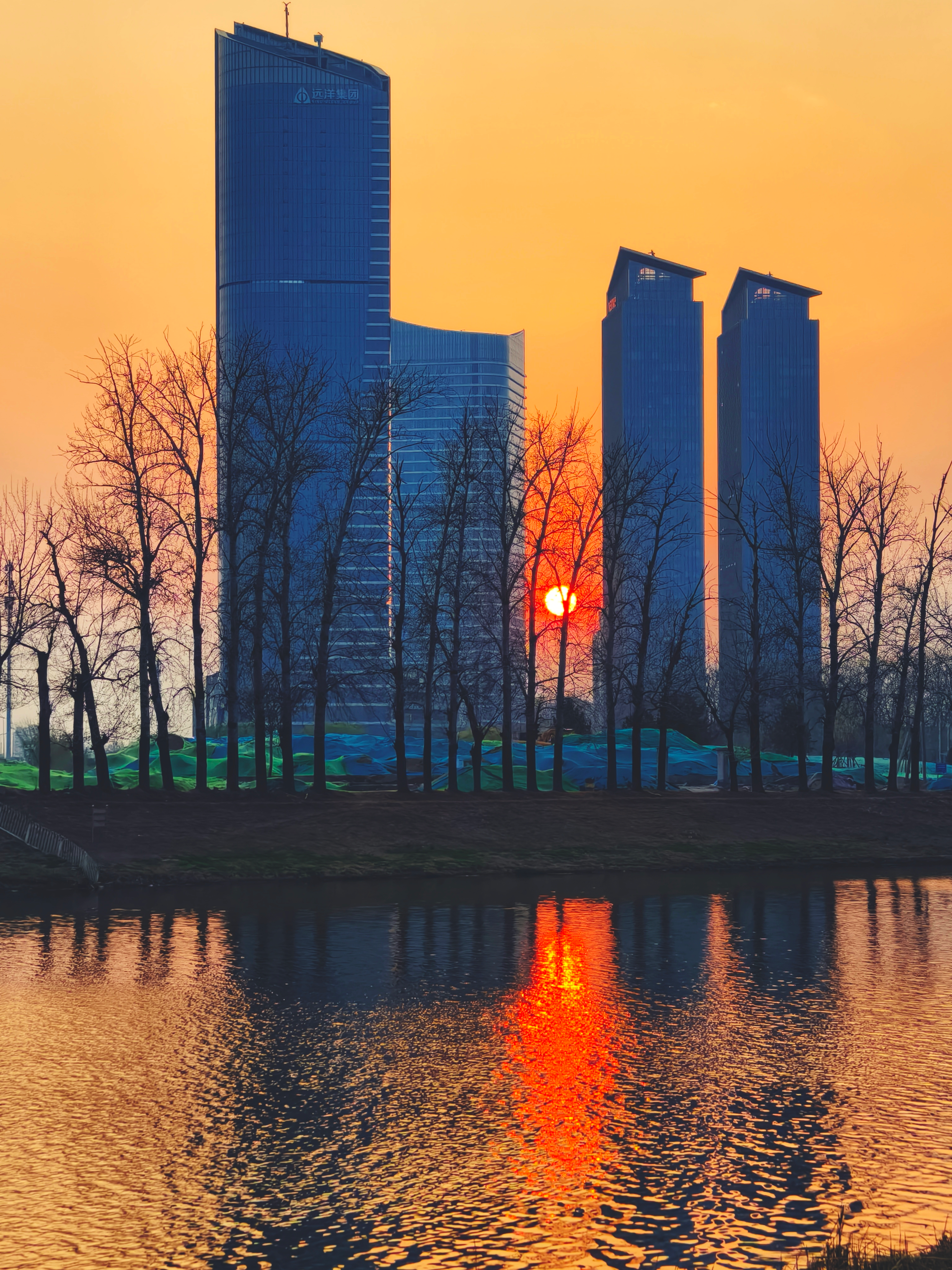 三月的最后一天,以一场绮丽日落温柔收尾。余晖似金纱,轻披世间万物,天际红日似火,燃烧春日浪漫。