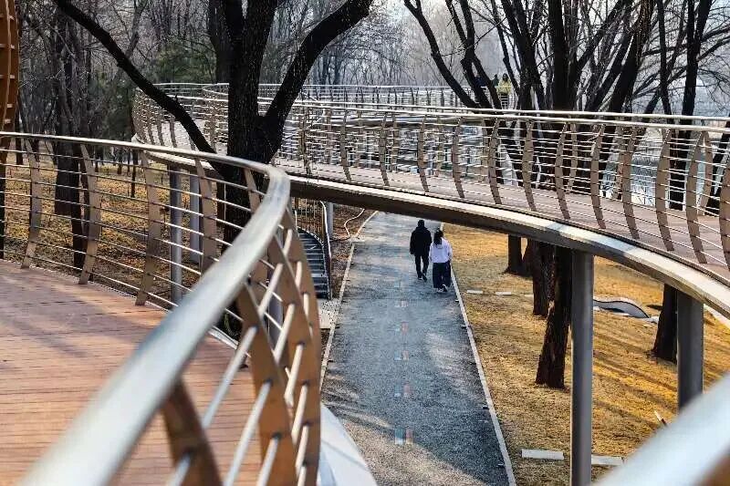冠林栈道穿梭林间,搭配休憩设施,让市民沉浸式感受自然野趣;