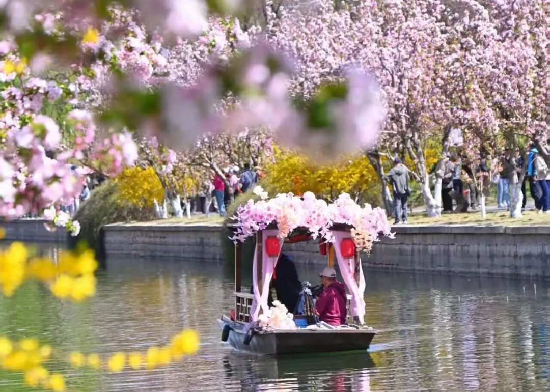 为打造独具特色的春日景观,规划植入了近6000株樱花树,涵盖阳光樱、松月、红绯衣等60余个品种。通过科学搭配实现樱花接力绽放,有效延长了观赏周期,花期将从4月持续至5月。届时,市民可乘舟赏樱,欣赏落英缤纷、粉黛满河的瑰丽景致,北小河也将正式成为京城首条“樱花河”。