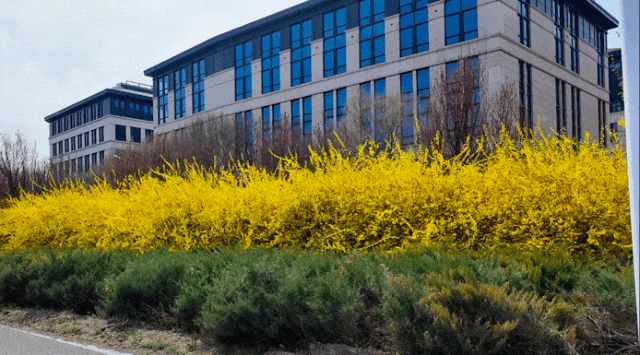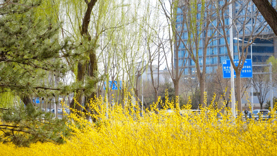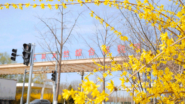 驱车行驶在货运北路,首先映入眼帘的便是道路两侧明艳动人的连翘。一簇簇金黄灿烂夺目,像是春天派出的迎宾使者,热情洋溢。
