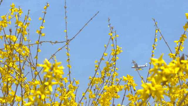 最妙的是,这条路上常有飞机低空划过,与地面花景形成独特的同框画面,一边是钢铁银翼腾空而起,一边是春花烂漫随风摇曳,现代交通与自然生机在此刻完美交融,随手一拍都是大片。