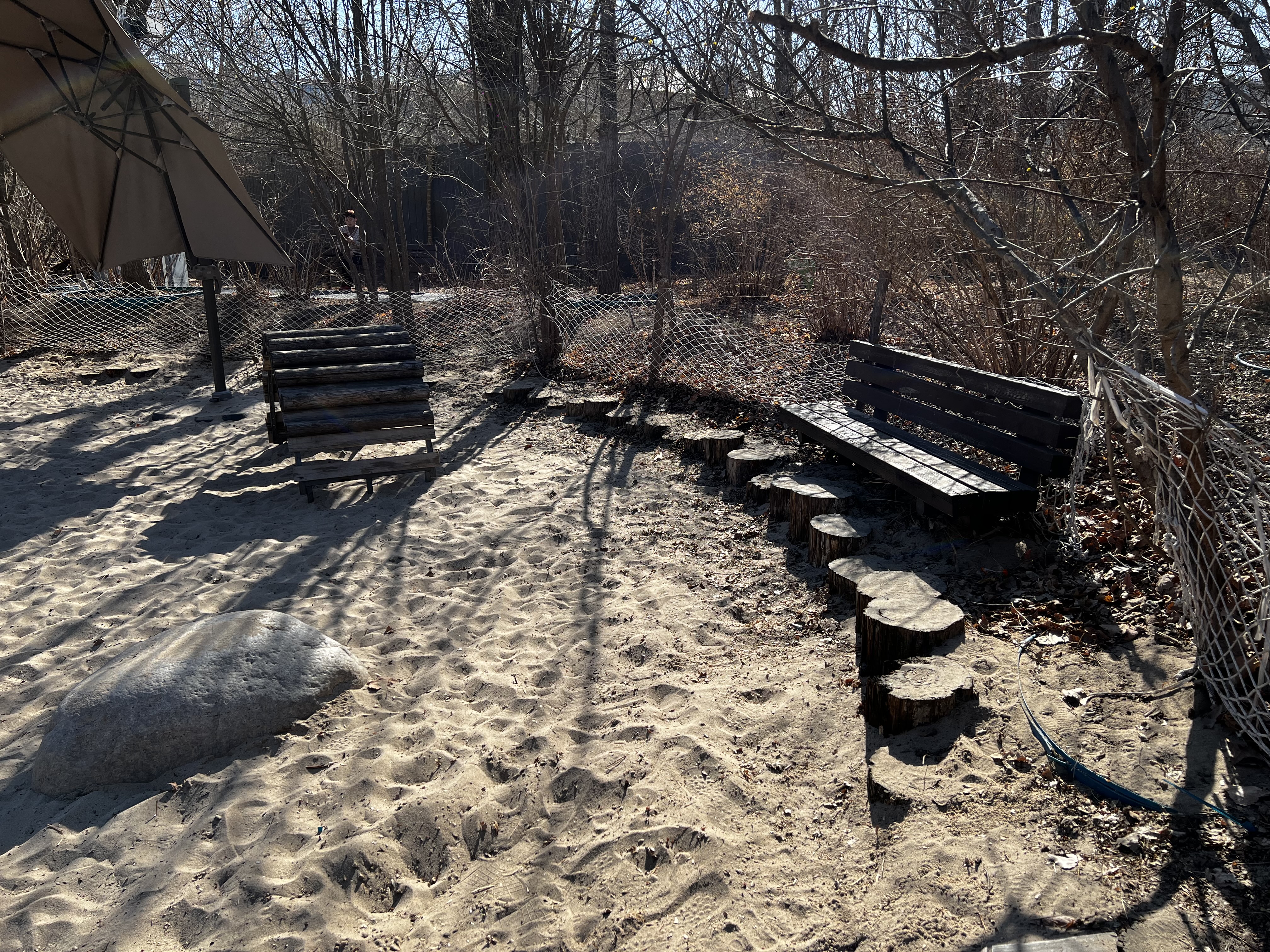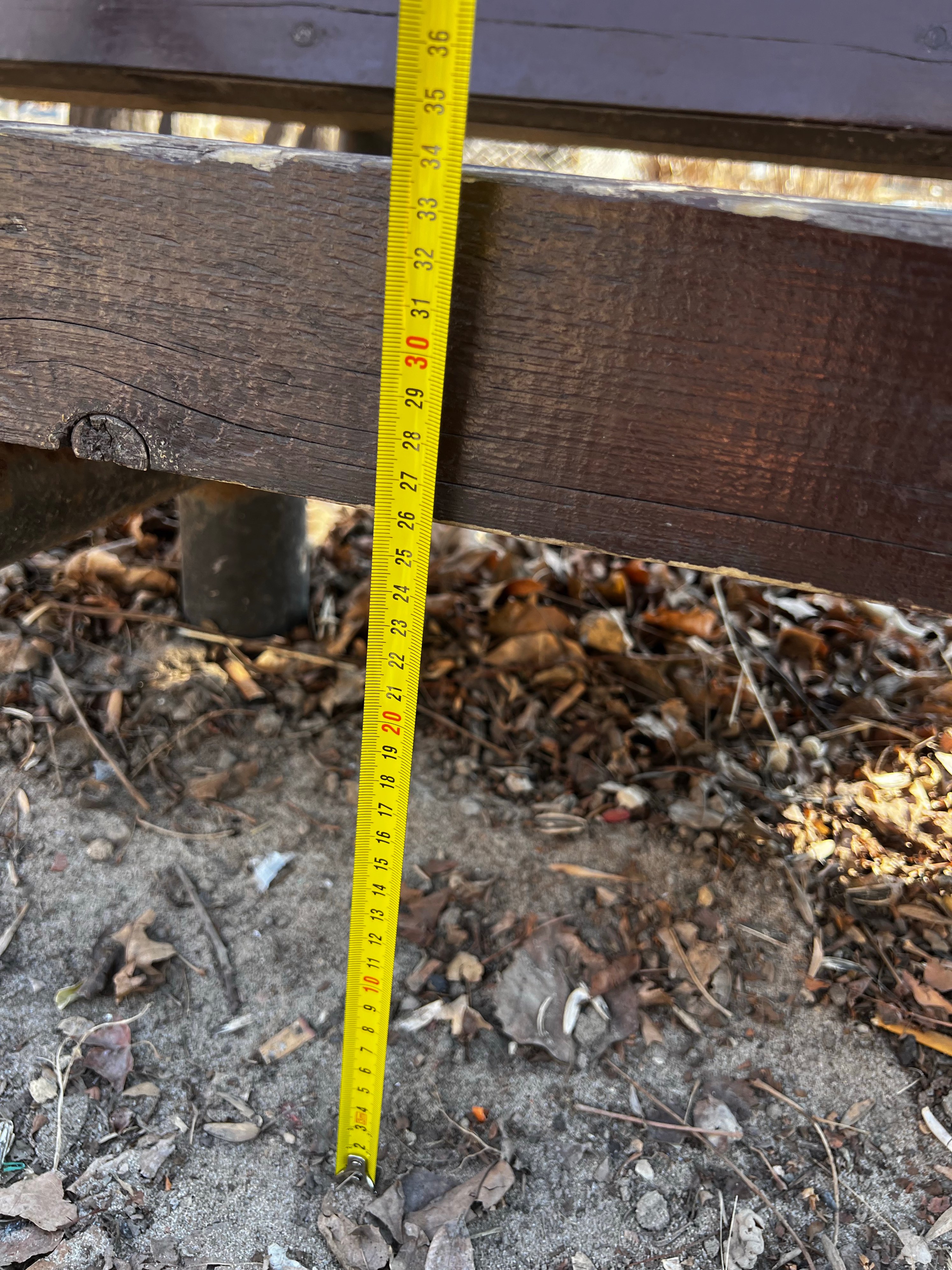 测量过程中,一位市民示意:“去看看沙坑旁边的椅子吧,那椅子更矮。”沙坑边环绕着高低不等的矮木墩,座椅就紧挨木墩设置。记者用尺子测量发现,椅面距离矮木墩的最短距离只有22厘米左右。有老人吐槽:“孩子在沙坑里玩,我们这些老太太一般坐在椅子上看着。椅子本来就矮,站起来费劲,脚底下踩的还是高低不平的木头墩子。万一孩子有点什么意外,老人一着急,想站起来进沙坑,很容易摔倒。”
