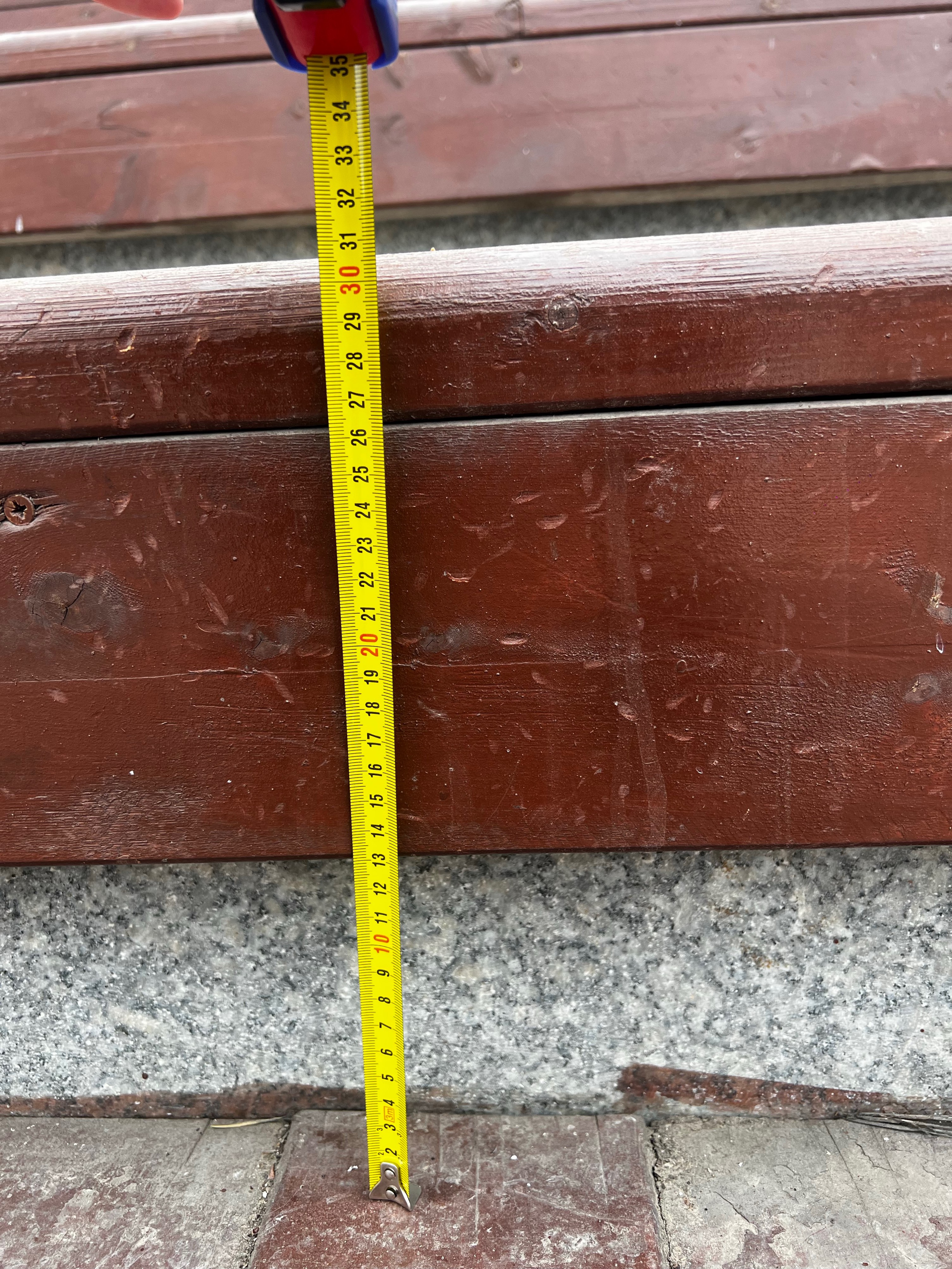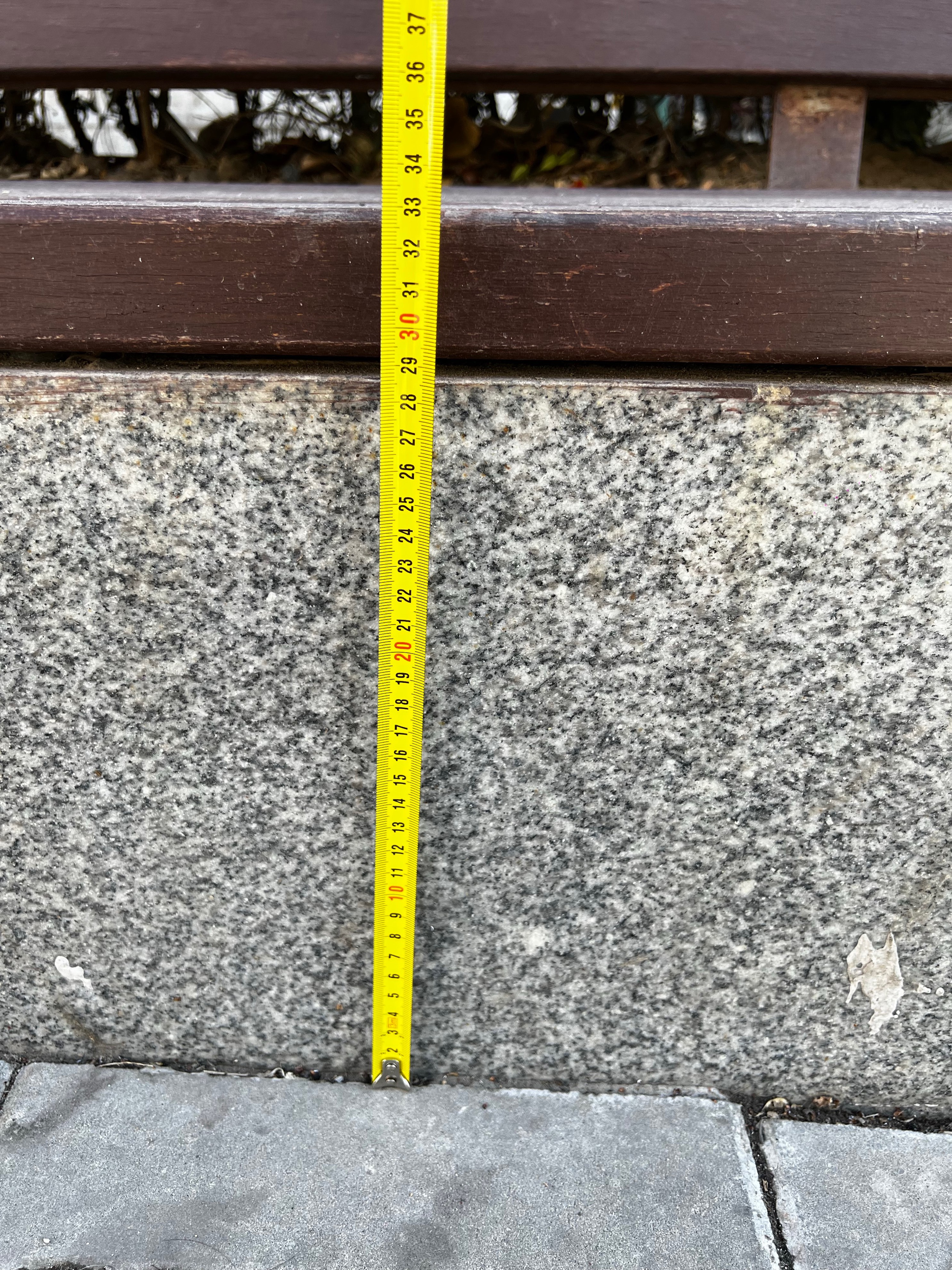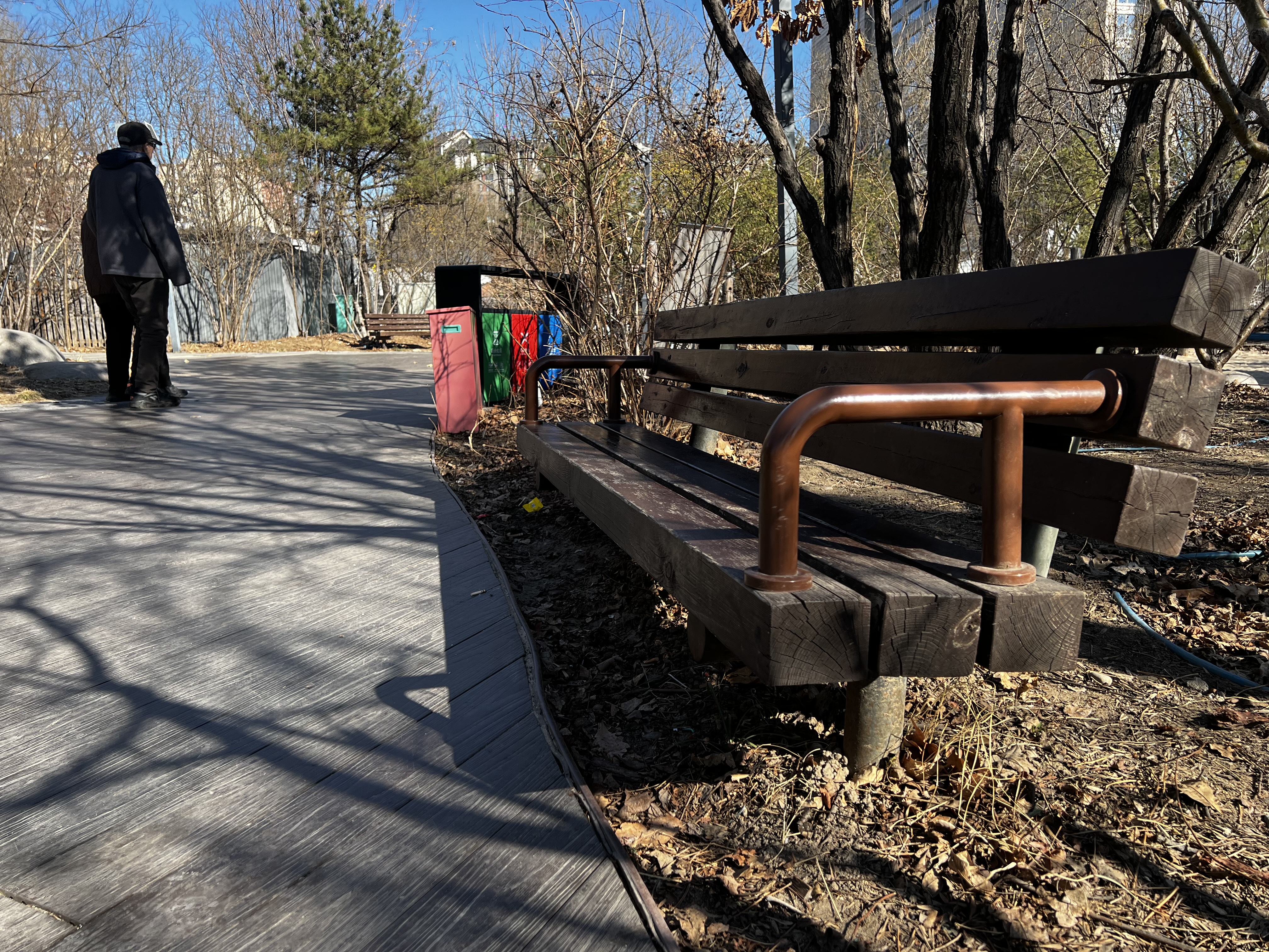 位于菜市口地铁西北角的广阳谷城市森林公园,是首都核心区内面积最大的城市森林。走入园内,无动力儿童游乐设施和沙坑吸引了不少孩子玩耍,老人则喜欢沿着林下步道散步、健身,或坐在步道旁的座椅上休息。记者注意到,有一位老人要从座椅上起身,一时没能站起,又一屁股坐了回去,最后用手撑着椅面才缓缓站起。记者来到老人刚刚坐过的椅子上试坐后发现,这处座椅的高度有点矮,对于本身腿脚不利索的老人来说,从椅子上站起来有点费劲。记者用尺子随机测量了路边的两个座椅发现,一个座椅从椅面到地面的距离为35.5厘米,另一个高度为34厘米。